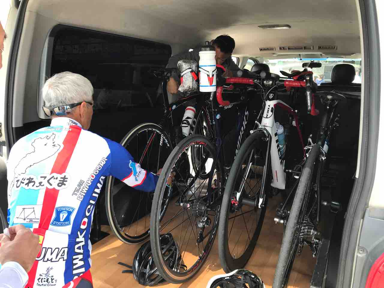 オレらも乗って帰ろか、と4台積み込み