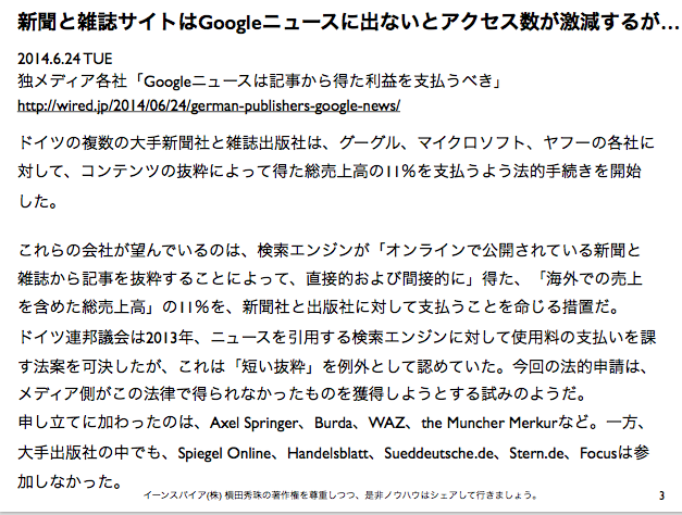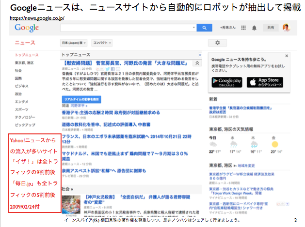 YahooやGoogleは新聞社のオリジナルのコンテンツをキュレーションしている。