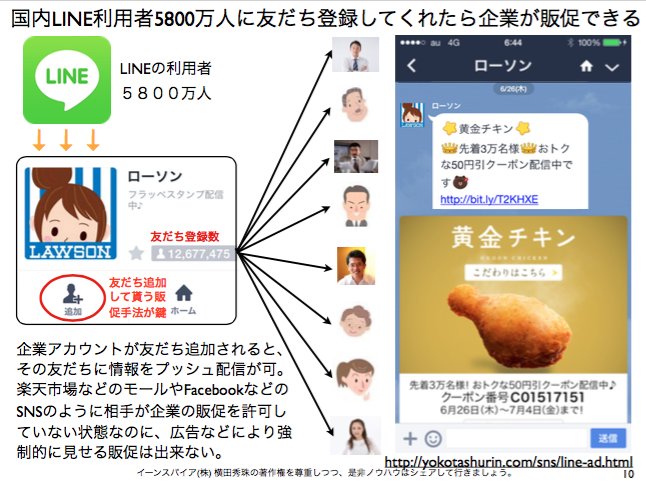 LINEで情報を見てもらうのは企業は友達登録してもらわないといけない。