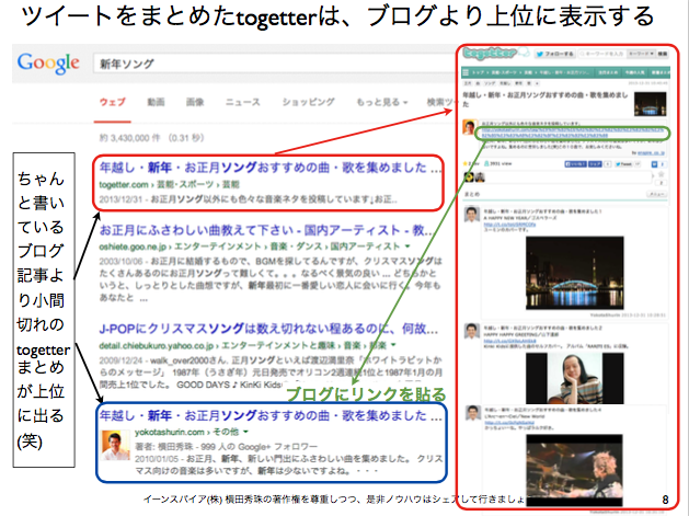 ツイートしてからまとめるとGoogleの検索結果の順位は上に上がる。