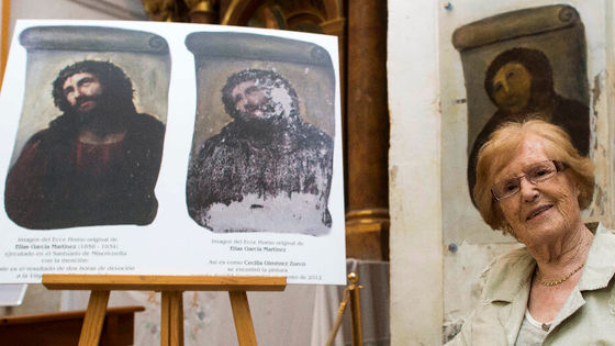 「世界最悪」のキリスト画修復、82歳女性に著作権収入の49%