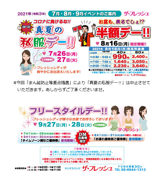 ザ・フレッシュ 2021年7月・8月・9月のイベントのご案内