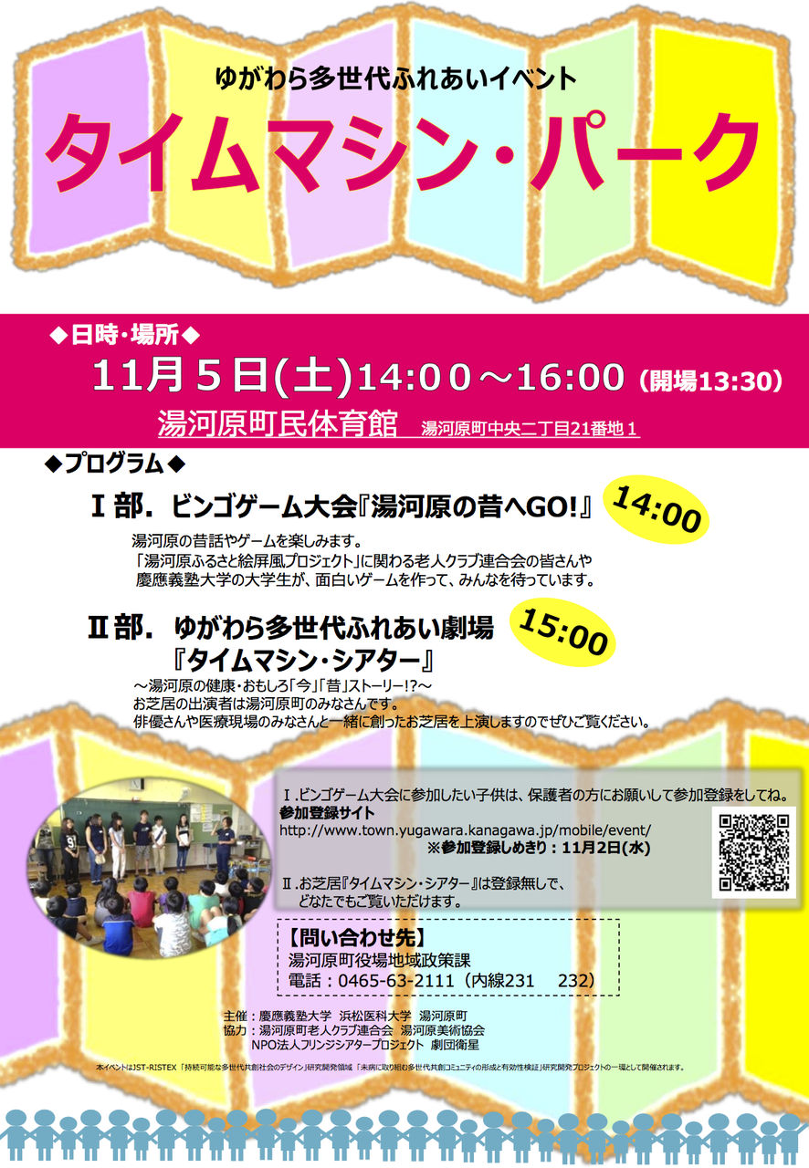 ゆがわら多世代イベント「タイムマシンパーク」(14時~16時開催)の第2部での発表となります。