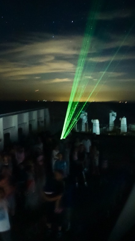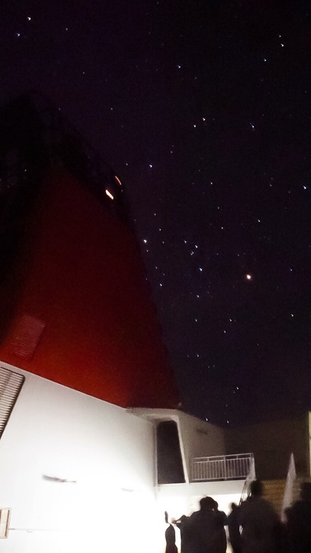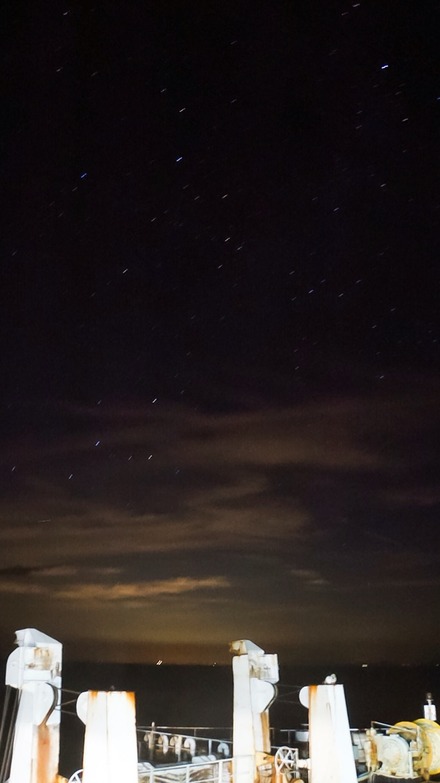 さんふらわあの船上では星空教室をしていますが、夜間のイベントで、なかなか写真素材がなかったので、先日の往復の際に手摺に固定しながら、なんとか様子が分かる写真が撮れましたので、アップしておきます。
