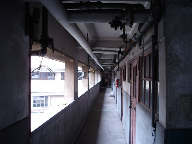 会社に近いこともあり前をちょくちょく歩いていたのですが、先日地元経済誌に今月中に取り壊し開始という記載がありましたので撮り納めに行ってきました。何度か中を覗いた事はあるのですが市営住宅ということもあり建物の中に入るまではしていませんでしたが既に居住者はいないということで廊下や屋上まで上がって見ました。