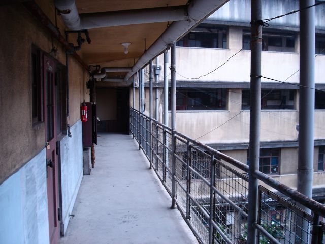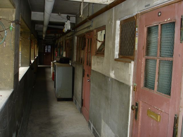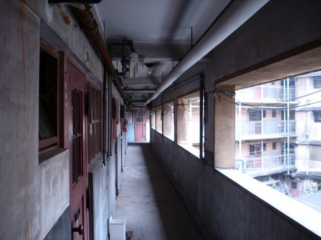 建物の中を見るとわかるのですが風呂なしに狭い廊下に屋上の共用スペースとまさしくコンクリート版の長屋なのです。そのうえ天井も低くこれでは住宅やオフィスとしてのとしての再生は困難でしょう。例え出来ても外壁を残して中に別の建物を造るような新築と変わらないような構造になるのではないでしょうか。