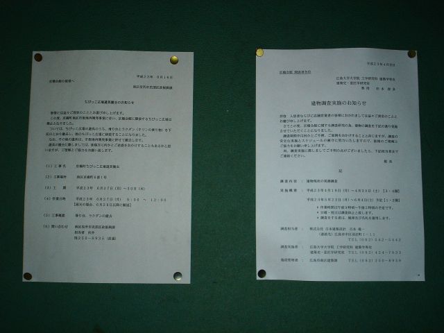 こちらの張り紙によれば5月に広大工学部意匠研究室の調査があったようです。