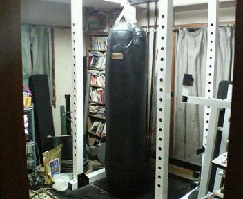 補強トレーニングが終わった後はヘビーバッグにひたすらローキックを叩き込むか、砂袋を蹴りこんでいます。これで足自体の強度が増せば圧縮バットもへし折れるような気がします(^^