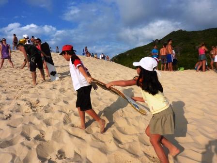 」で、行き気持ちよ〜く滑ったのはいいけれど、その後ボードを持って上って来なければなりません。
