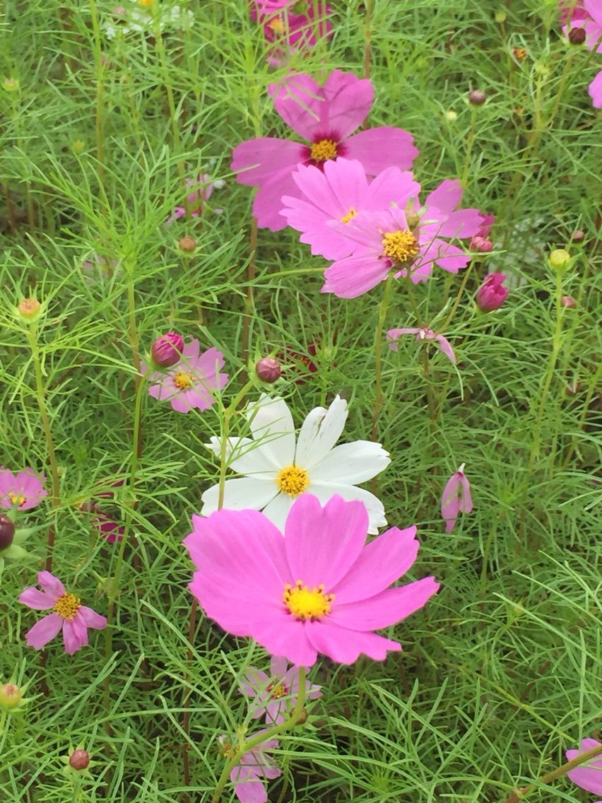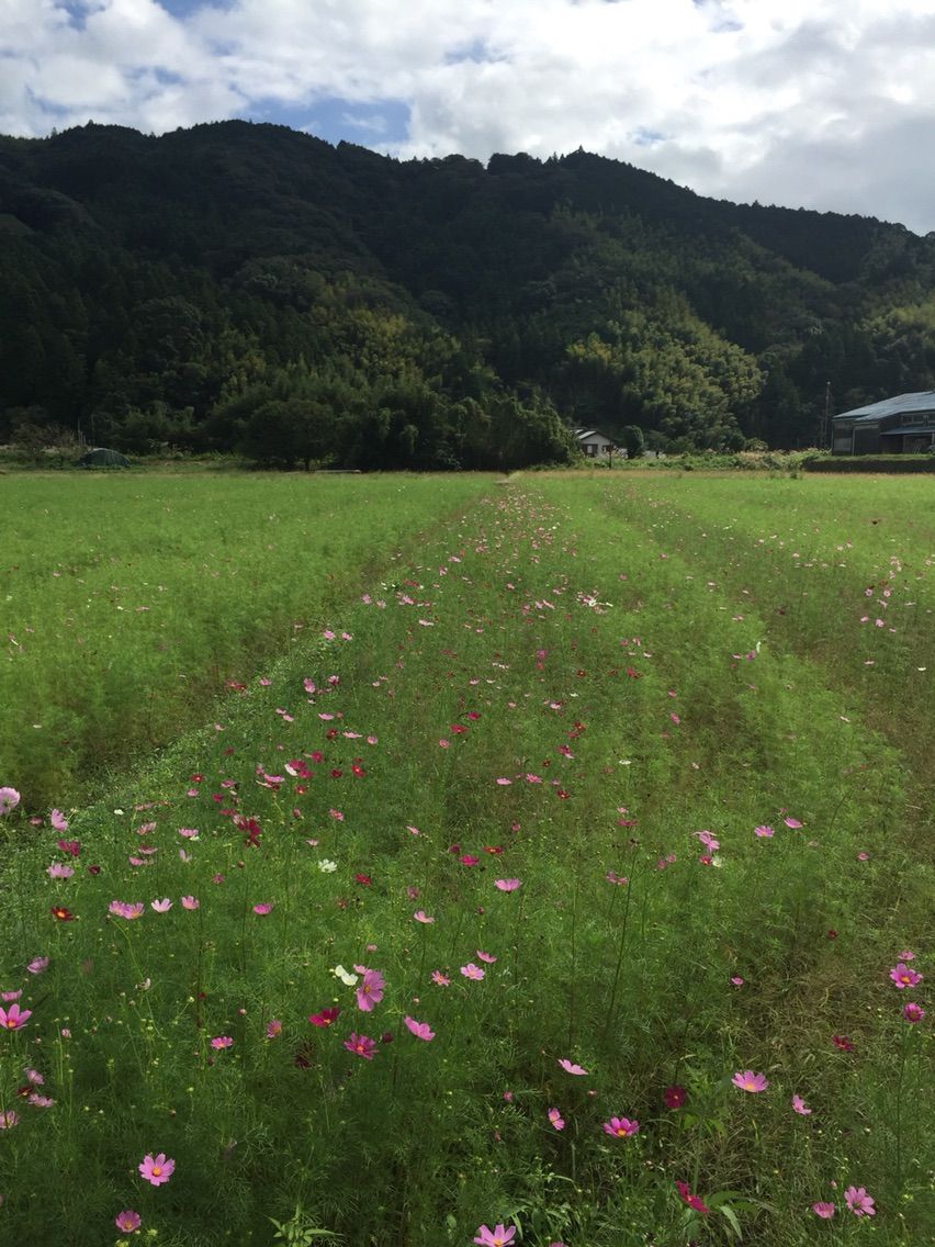 2016年10月10日 コスモスが咲き始めます 今年も岡部のコスモスを見に行きました。 10月22日がコスモス祭りだそうです。 少し早めのコスモスです。 岡部は、来週は、龍勢のお祭りです。 町の人たちは、大忙し。準備しています。 山が近く、川もきれい。そして、町の人たちは、優しい。岡部の町です。