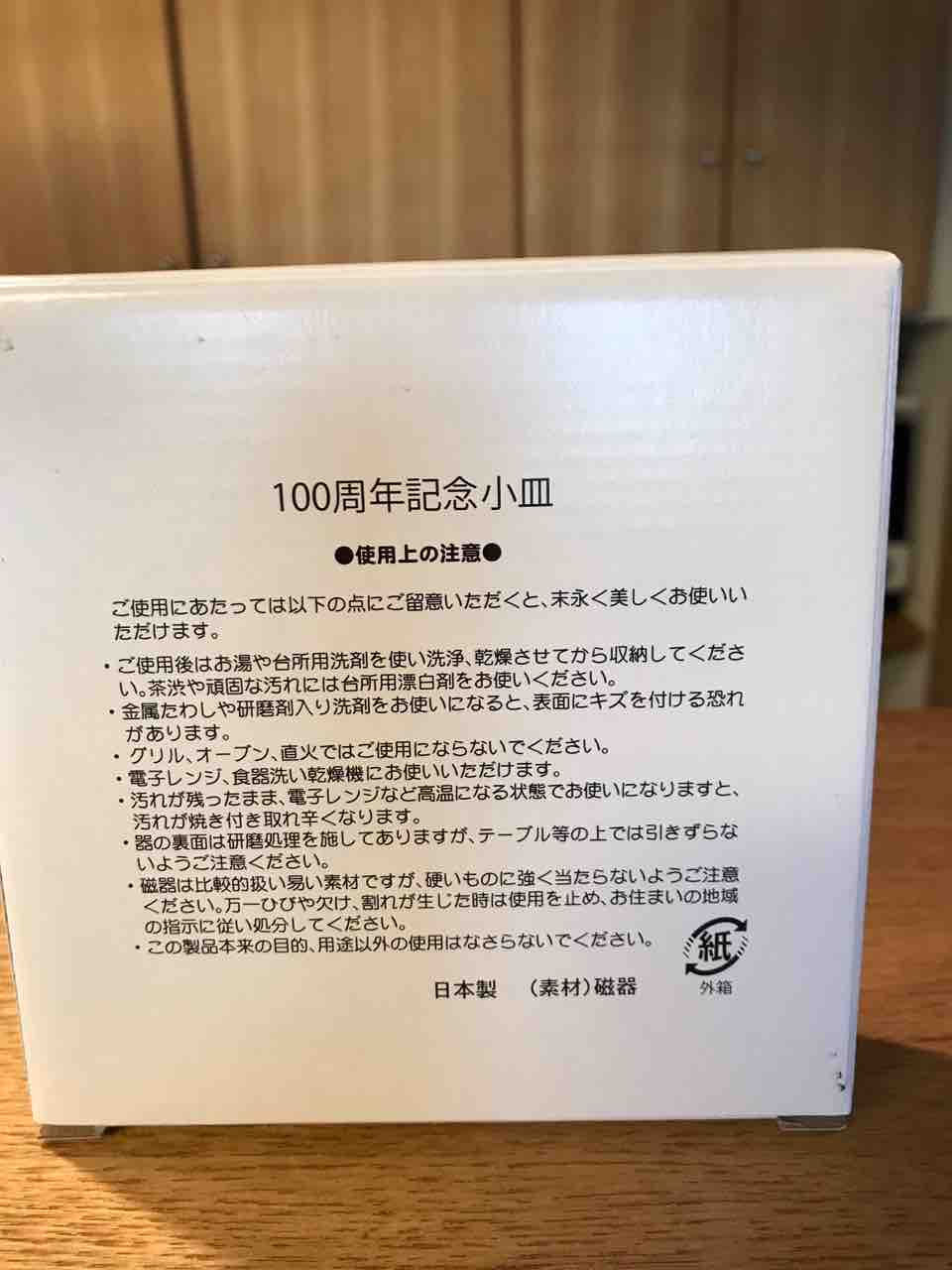 2018年02月28日 ナショナル坊や 100周年記念の品です。中身は、お皿でした。1950年から1960年、キャラクターブームでした。中でも人気だったそうです。箱の裏側には、丁寧な説明が、あります。電子レンジを買ったときに、いただきました。