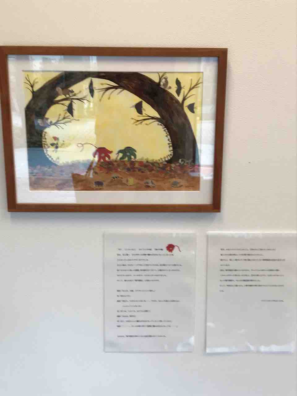 2018年10月28日 個展へ行ってきました 絵本の原画展へ行ってきました。すごいよ。絵の中の動物たち。葉っぱひとつひとつが、小さなパーツの重なり合いになって、生まれてる。動物の目も。原画の隣に、虫眼鏡が、置いてあります。見たら、小さな目が、よく見えます。キャラクターが、LINEスタンプに、なっています。私は、愛用しています。