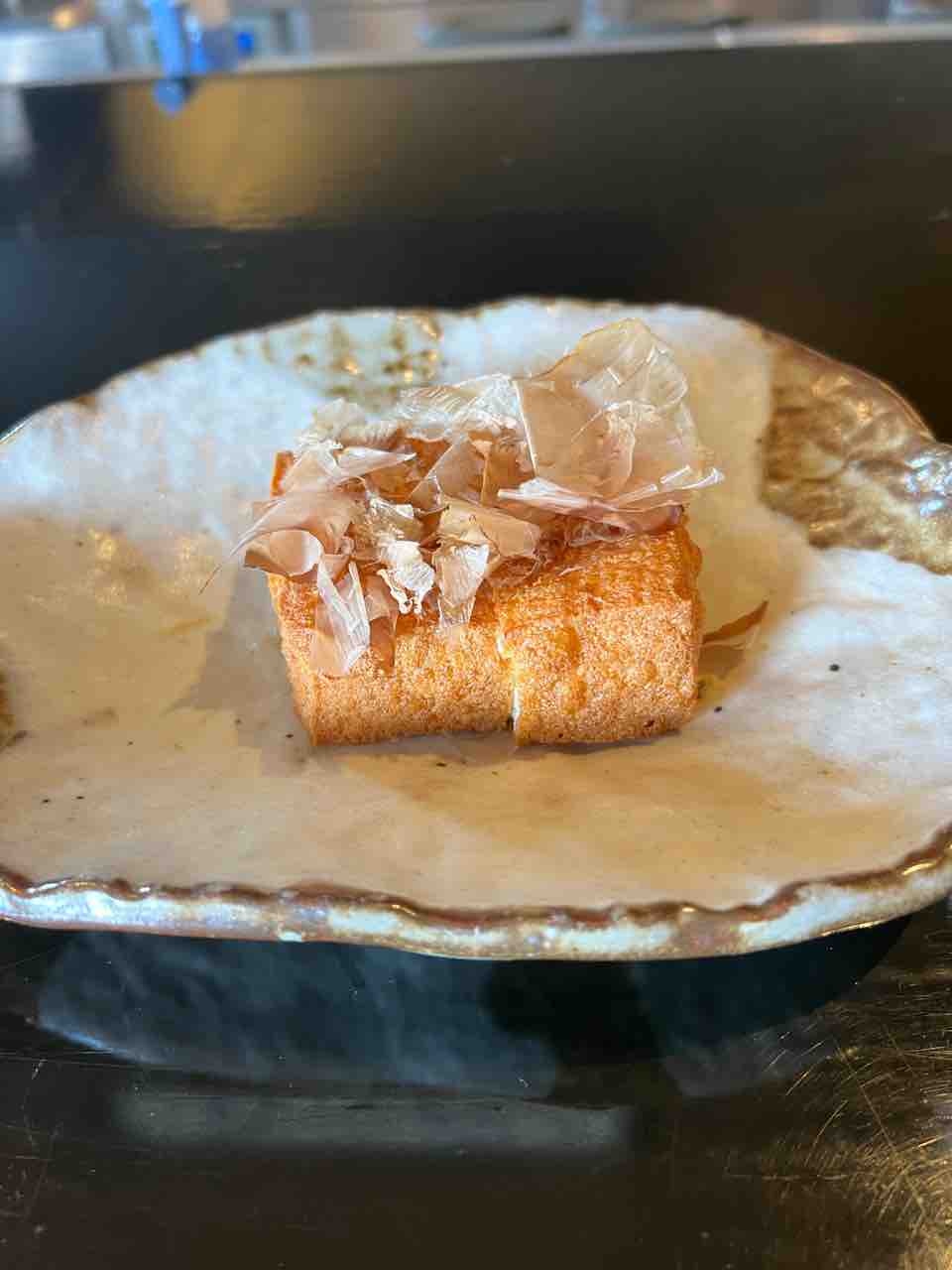2024年04月14日 にがり 食べたことありますか?知らないことばかりですお豆腐を固めるとき使う?かなぁとお父さんが、87歳まで、お豆腐屋さんをやっていた大将のお店に出会いましたお豆腐料理も得意。豆乳に始まり、手作り豆腐絹ごし豆腐を揚げた、厚揚げアツいからやけどするから気をつけて食べてねアツアツパリパリおいしいにがりも舐めさせて、もらいました広辞苑で「にがり」とは、「海水を煮詰めて精製した後に残る母液」と表現されています。 ニガイ大将は、子どものとき、食べていた料理が、とっても贅沢だったとずいぶん大きくなって気がついたとおっしゃっていました
