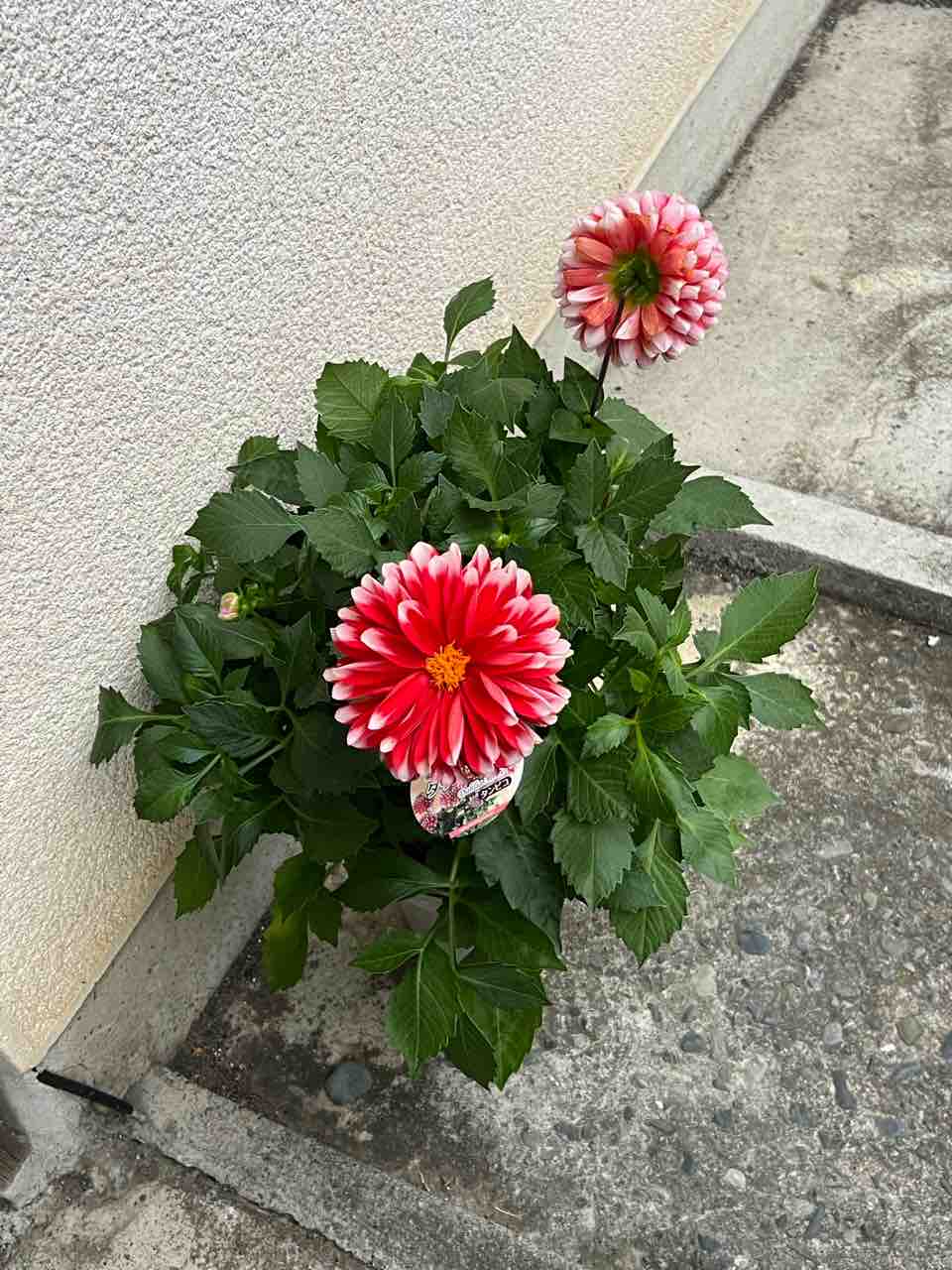 2024年04月27日 花 は好きだけど。なかなか、うまく育てられない。3月にバラの鉢植えを贈ってもらい、玄関に置いたら、通るたびに目にする。なかなか、微笑ましい。ゴールデンウィークのせいか心にゆとり。お花屋さんを覗いたら、かねがね欲しいと思っていたダリアが、目に入ってきた。お店の人が、次々と咲きますよって。しばらく、楽しめそうです
