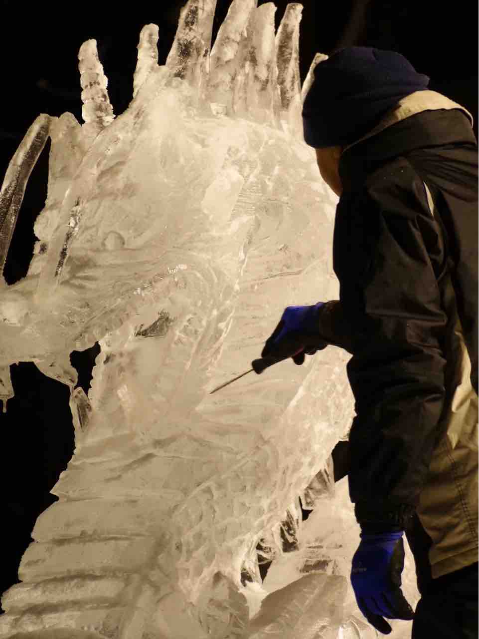 氷像2基は現在最終仕上げが行われています!洗練された技術で制作された美しい作品を是非会場でご覧ください!