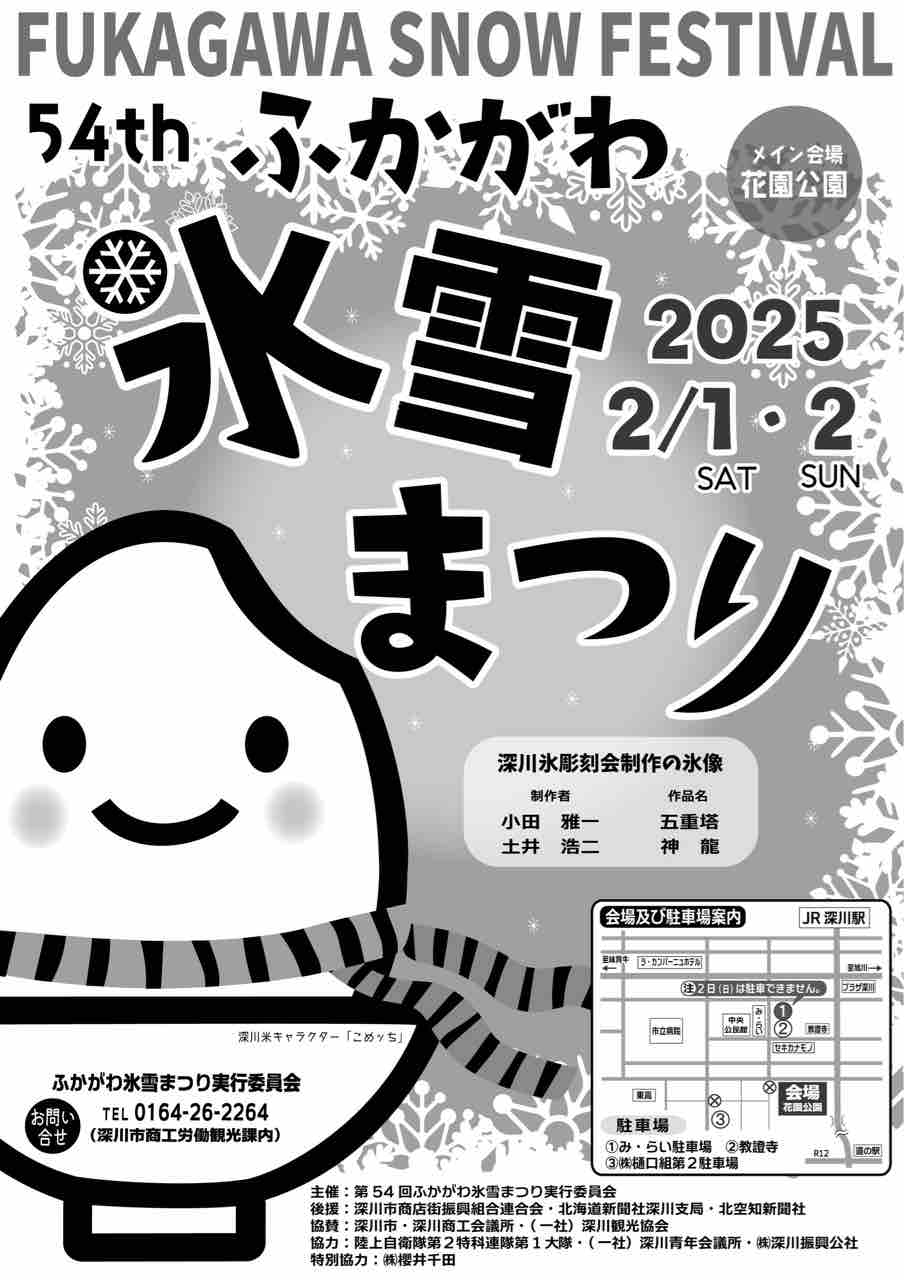 さて、いよいよ明日より第54回ふかがわ氷雪まつりが開催となります!十分な防寒の上ご来場いただき、冬の深川の魅力をぜひ本イベントでご堪能くださいませ。