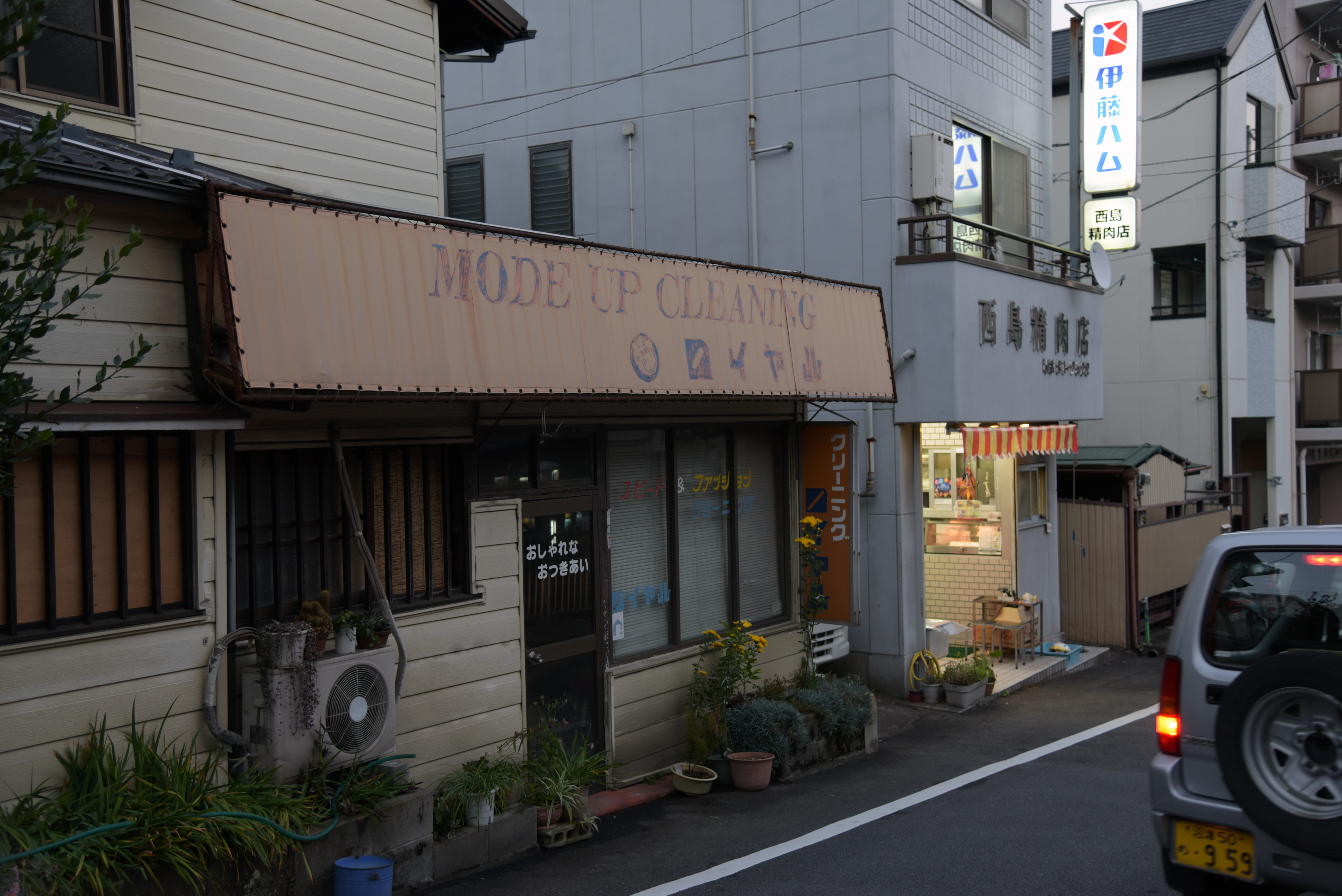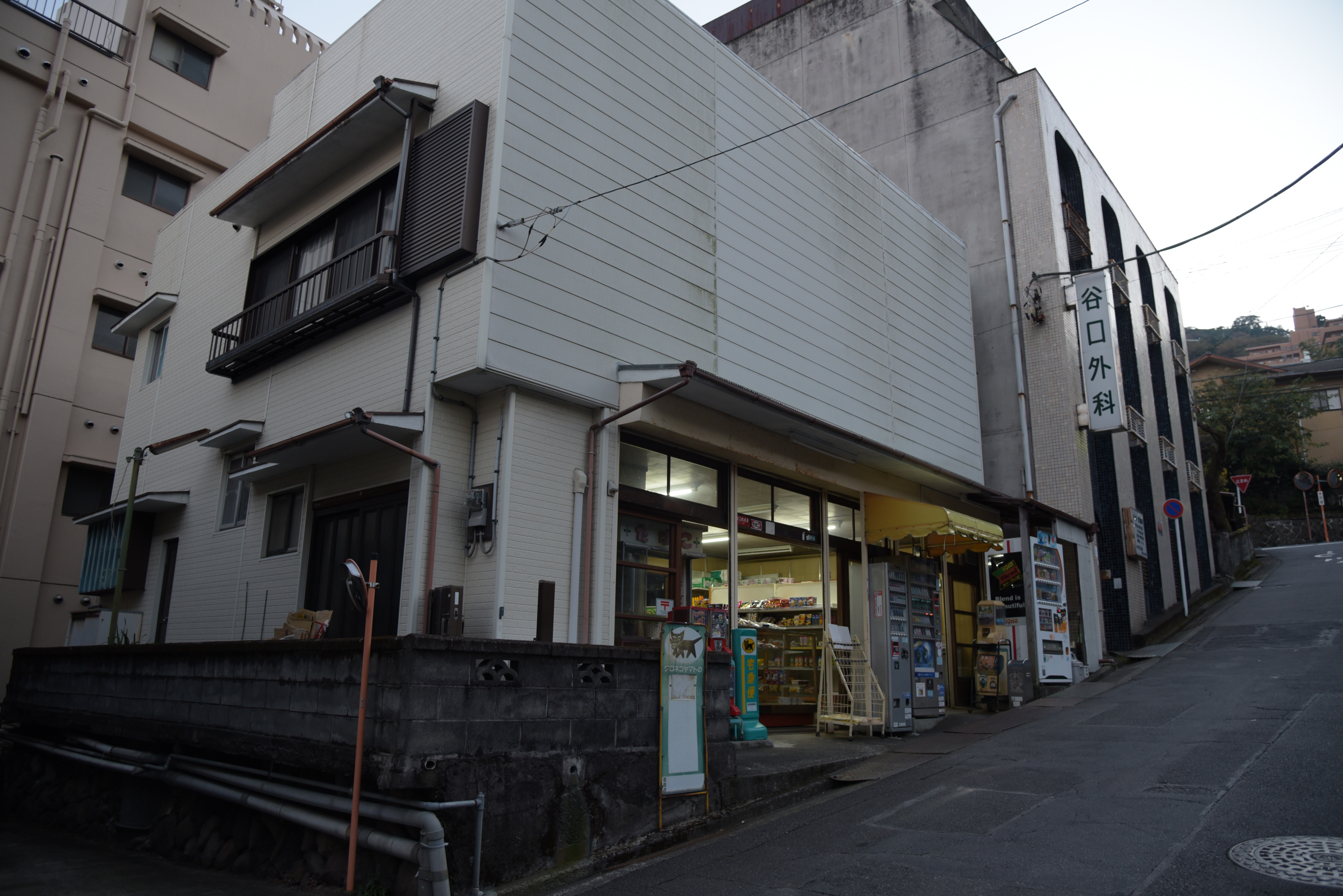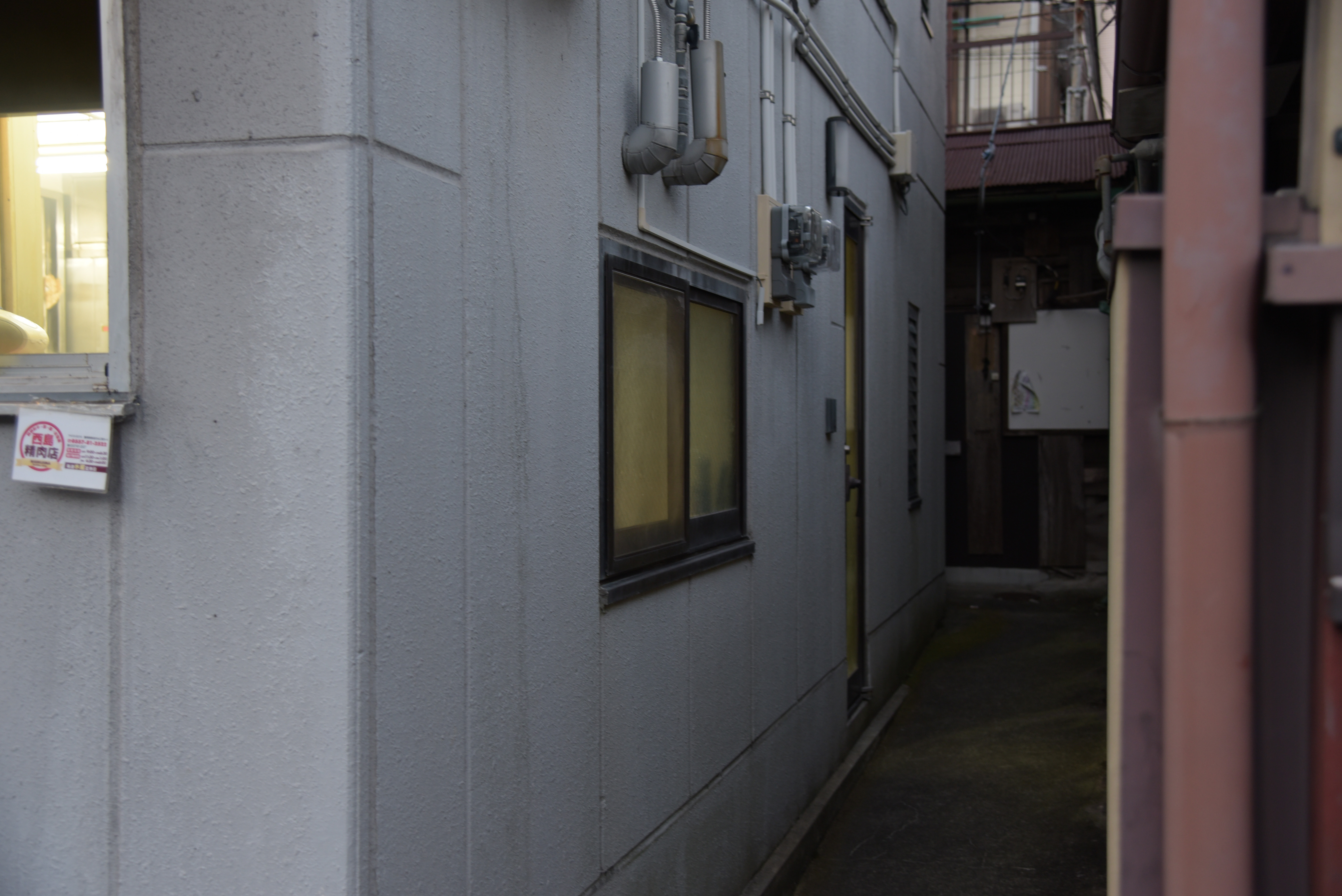 と精肉店と隣の隙間を入っていった奥が第二浴場。茶色の建物。