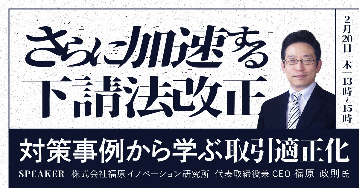 【タイトル】さらに加速する下請法改正 対策事例から学ぶ取引適正化
