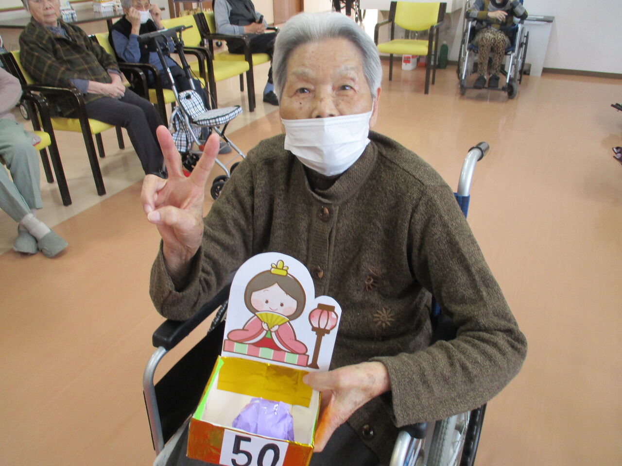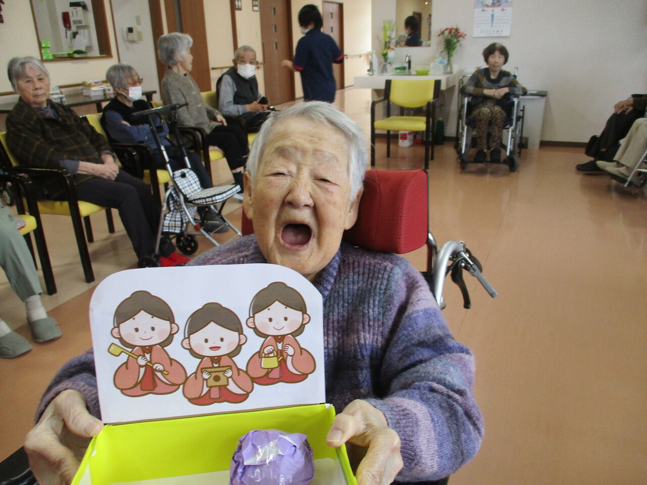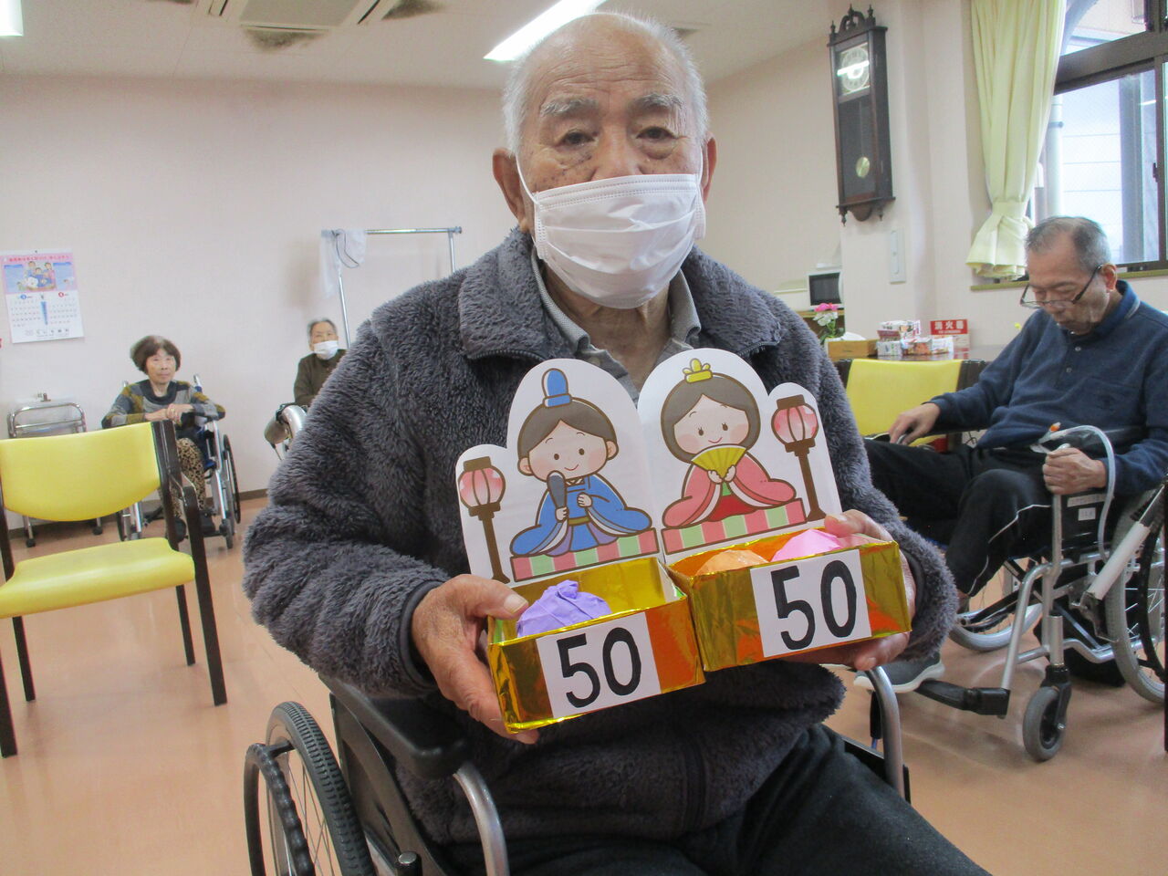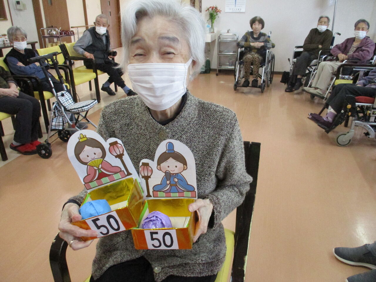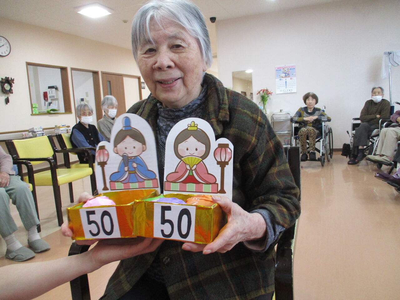 去年までは入居者様にお雛様やお内裏様の衣装を着て頂いての撮影会だったのですが、毎年同じことやってると、入居者様も職員もいい加減飽きてしまう…