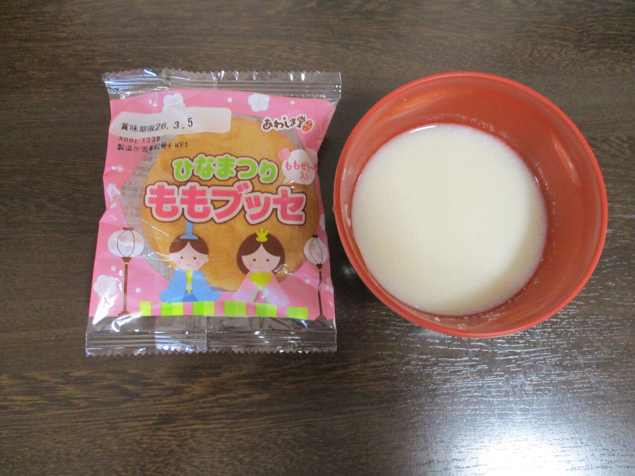 ゲームの後はおやつの時間…ひな祭りらしく、甘酒と市販のスイーツとセットで!