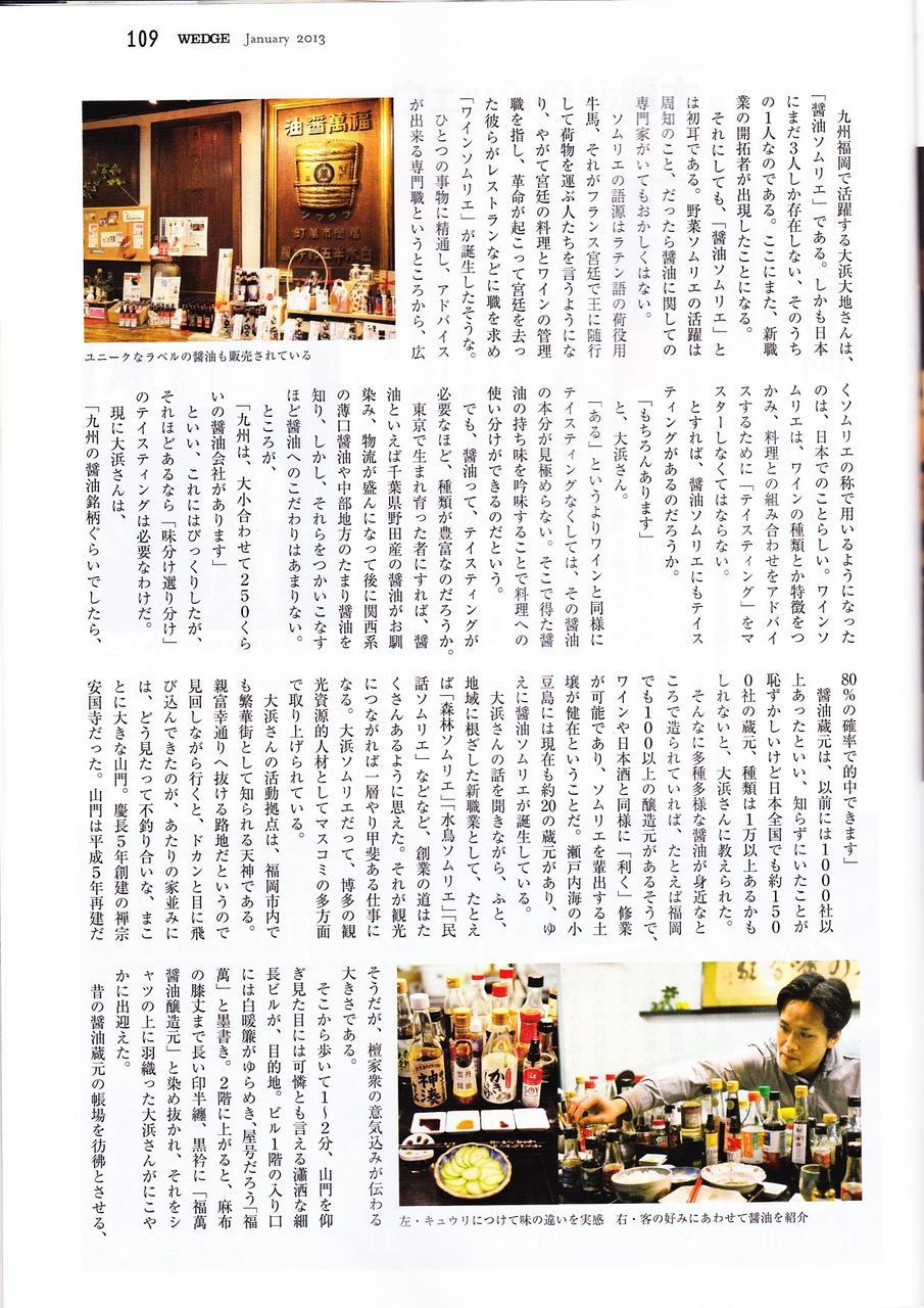 WEDGE 2013年1月号 に福萬醤油を掲載いただきました!