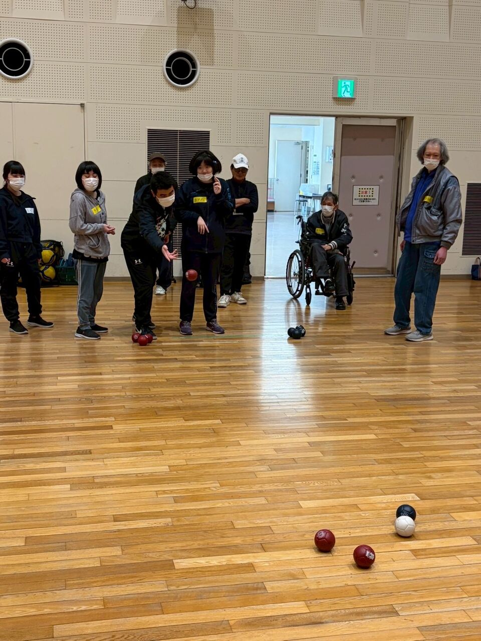 当日式典は午後からでしたので到着してからボッチャ体験をするグループとフードコートで昼食を取るグループに分かれました。