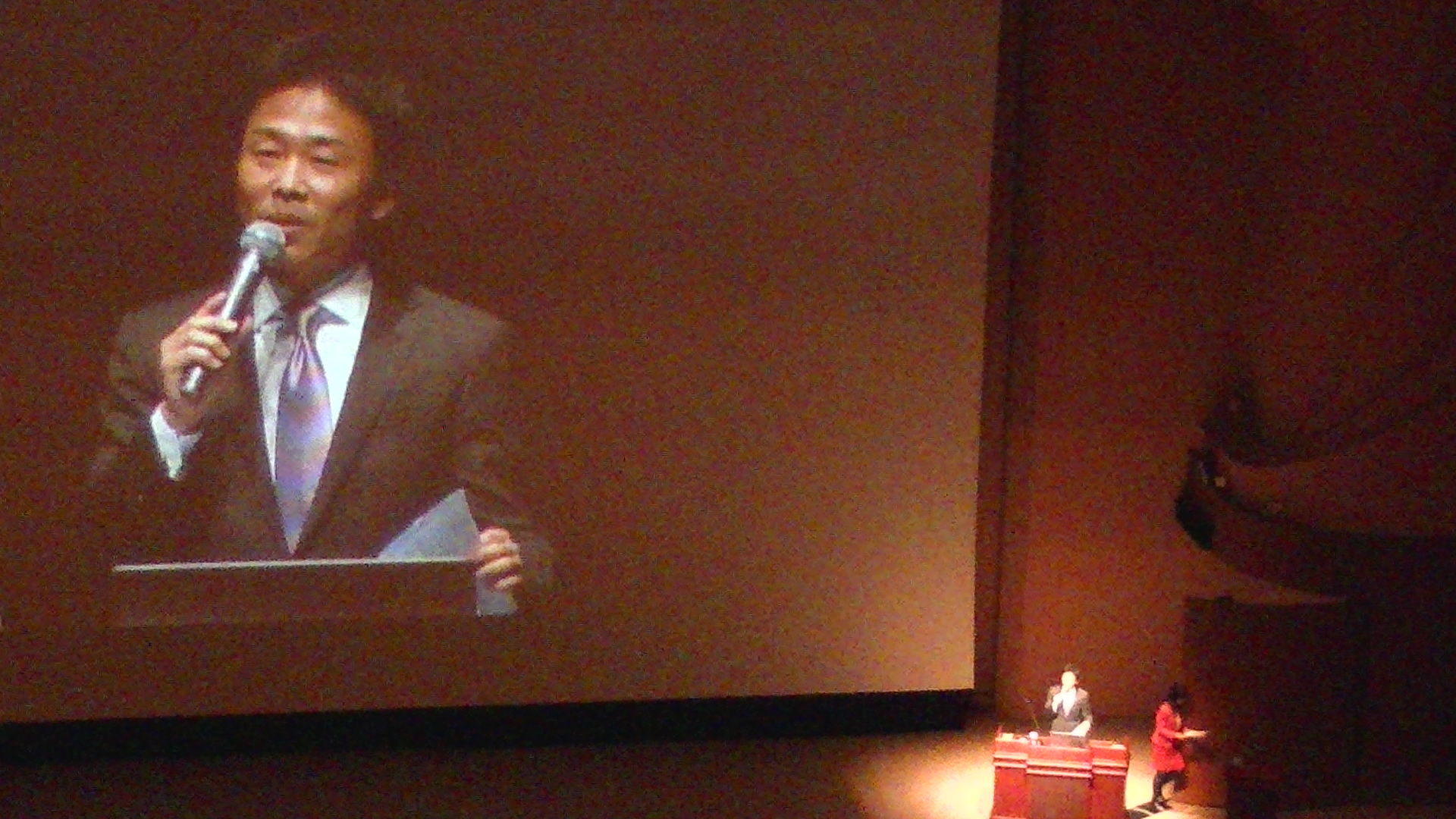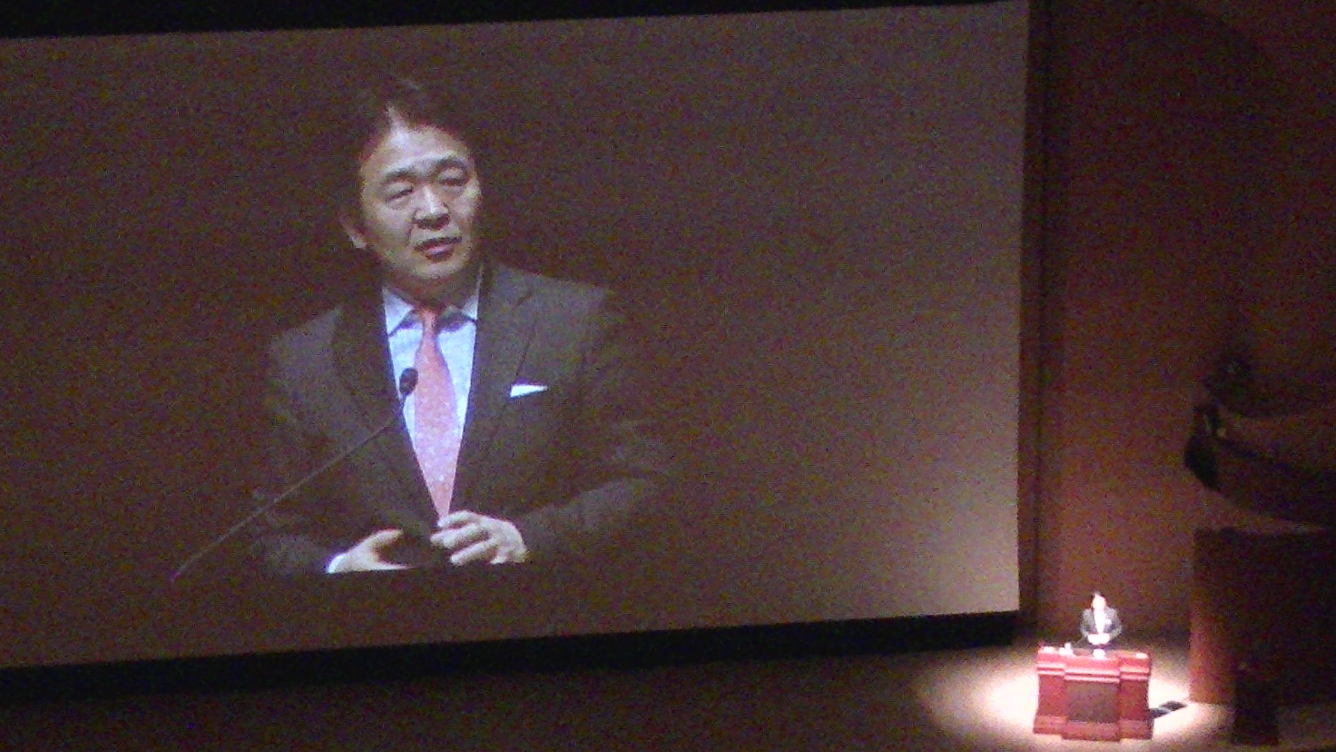 辛坊氏の顔が肉眼でもよく見える場所に席が取れました。ラッキーでした。