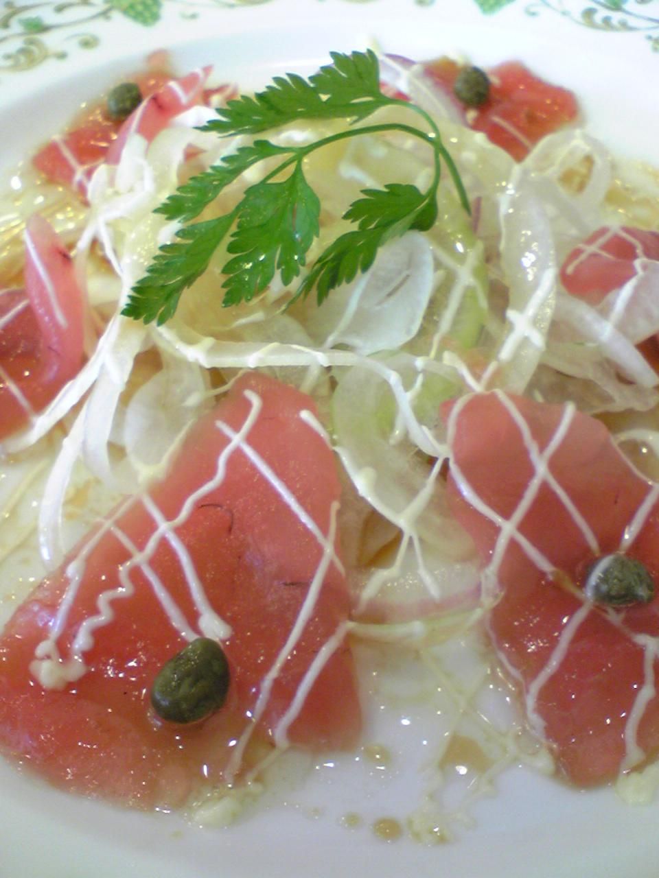 まぐろのカルパッチョ風は、流石に3階で割烹神谷を営むだけあって、鮪の鮮度が良く、美味い。