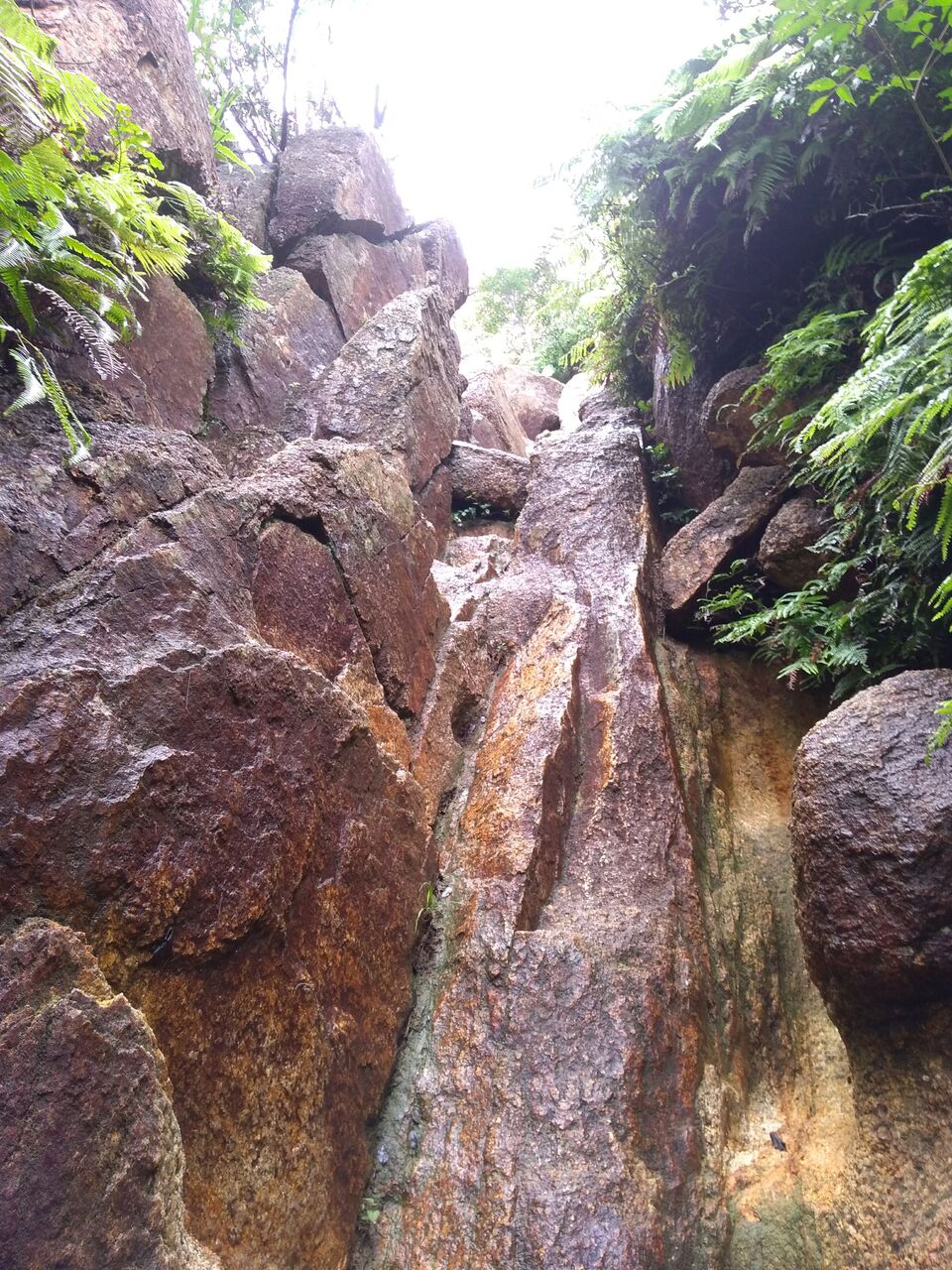 稜線を歩いていくと、いよいよ荒地山の玄関ともいうべき、「岩はしご」が現れる。
