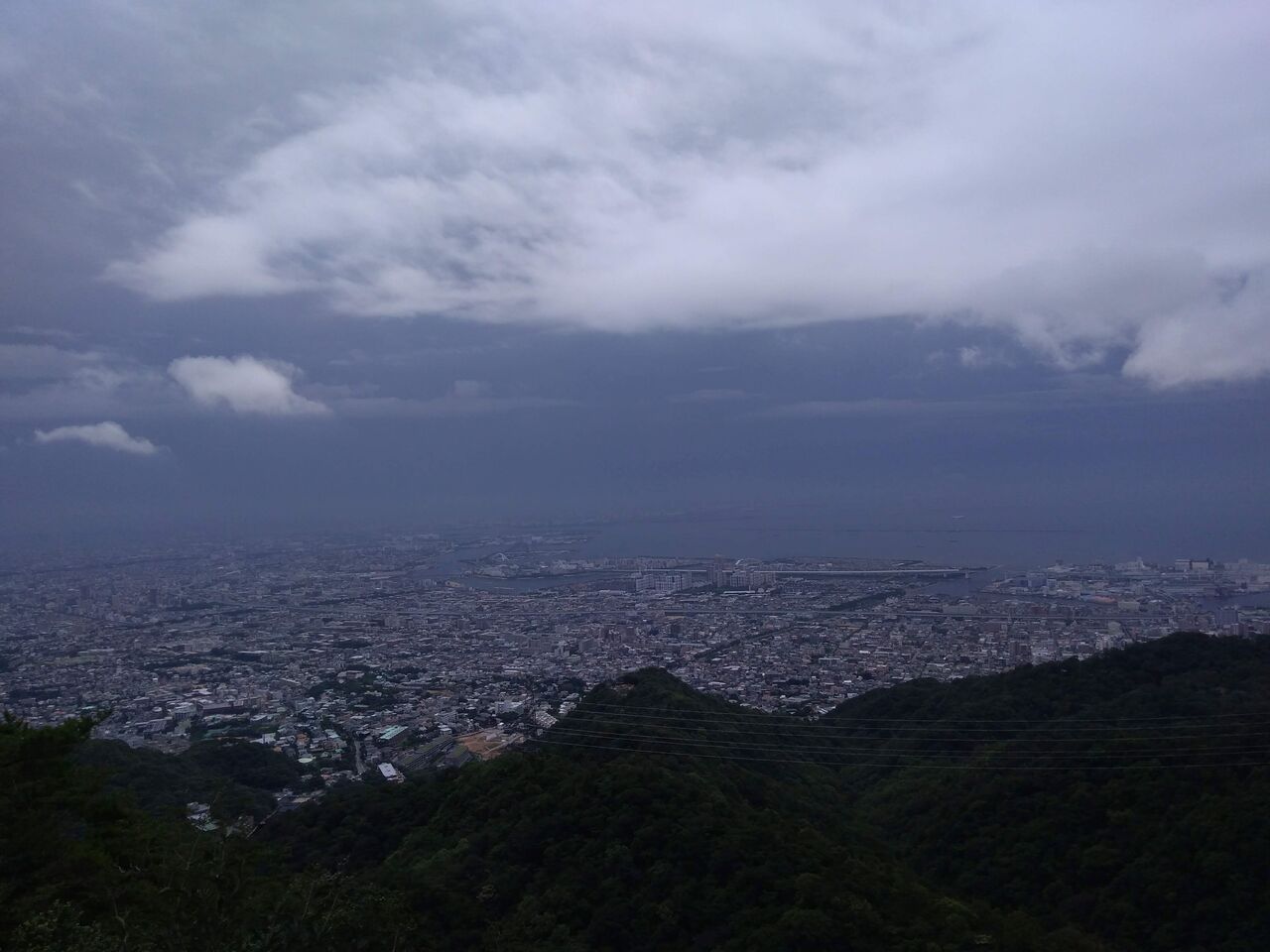 六甲山も雲に包まれている。