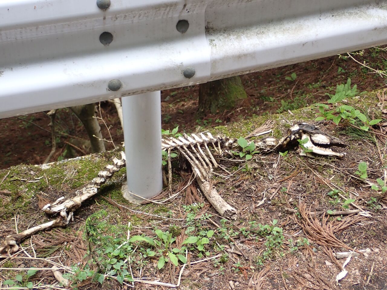 林道の途中で見つけた仏さま。はて、これは鹿だろうか。頭頂部以外は見事に白骨化。