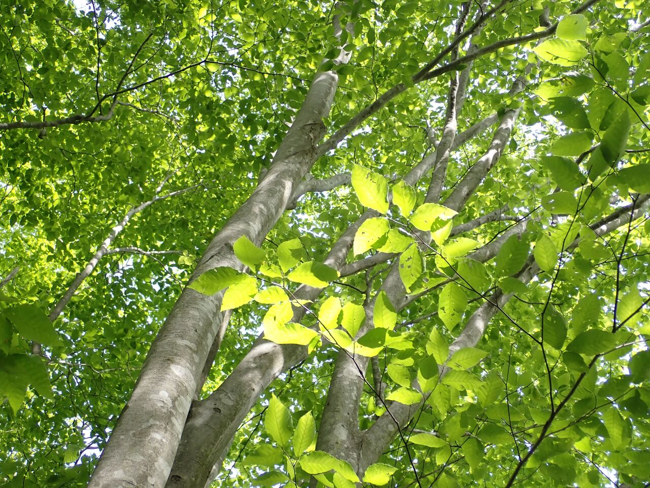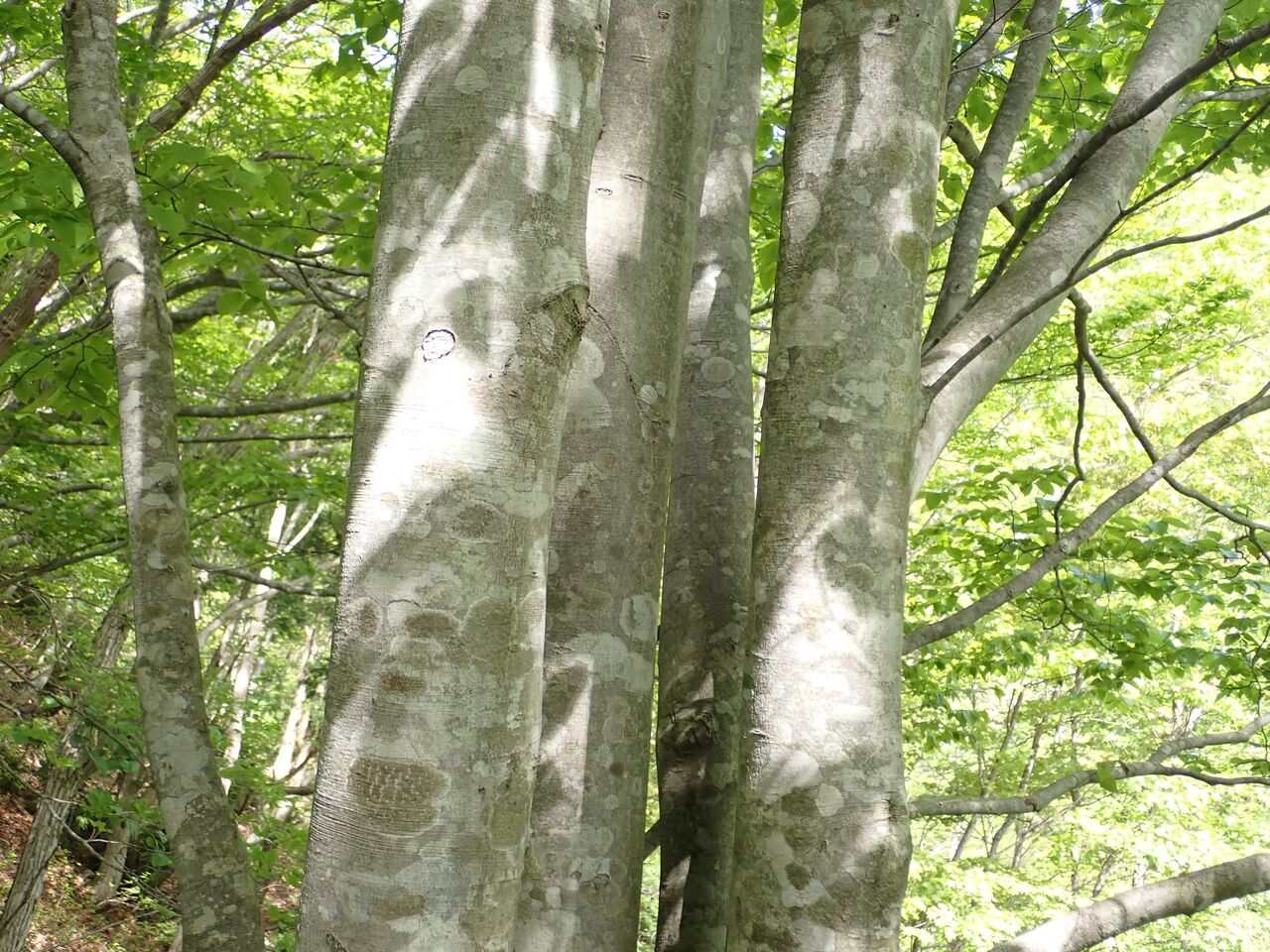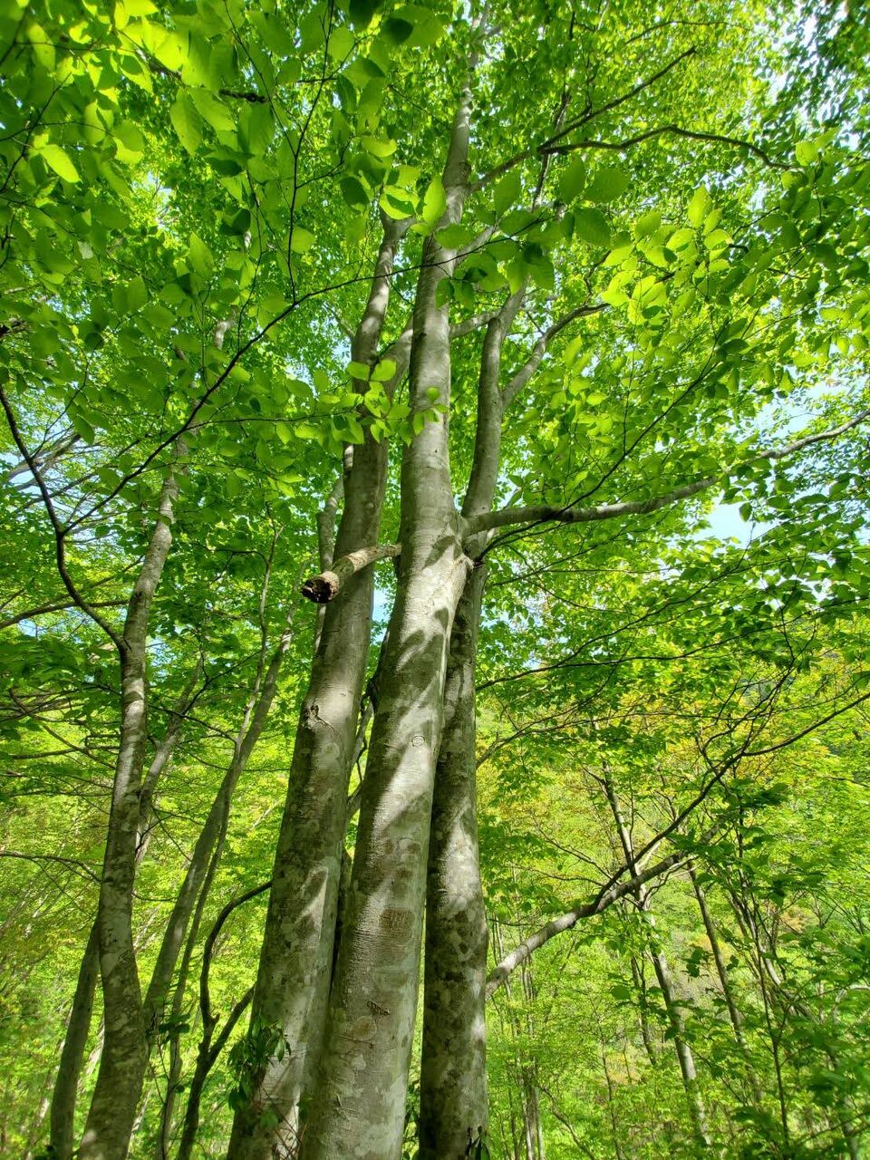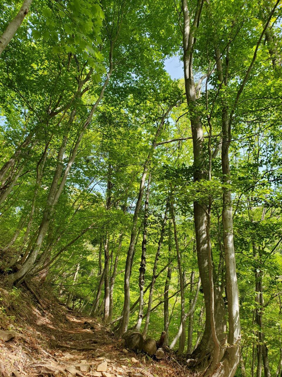 谷沿いの道の両側はブナの木。まだ若い木のようだ。