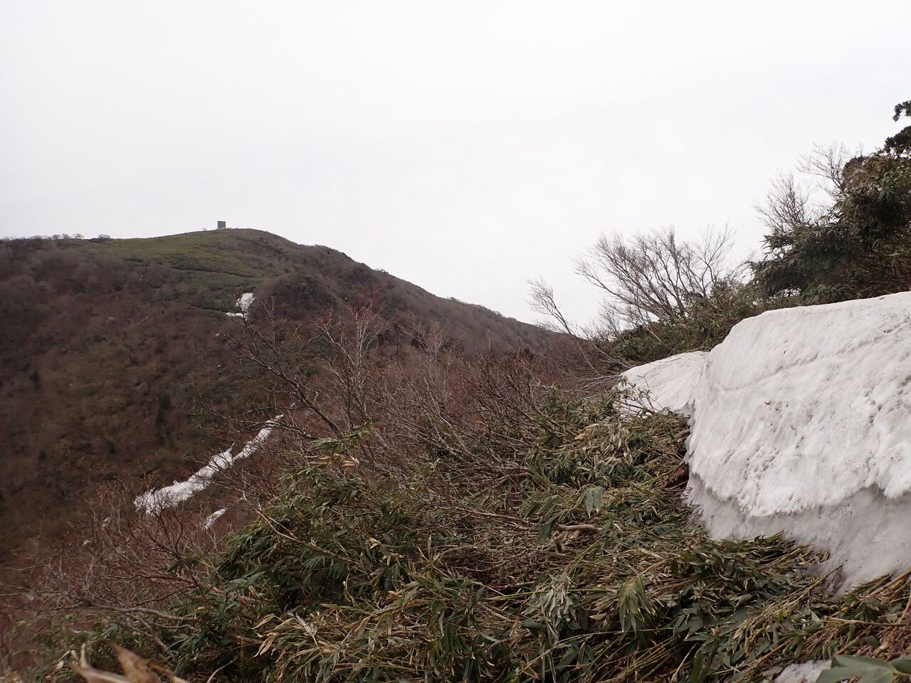 数日前に降雪もあったとのことだが、稜線にはいたるところにまだ残雪が。