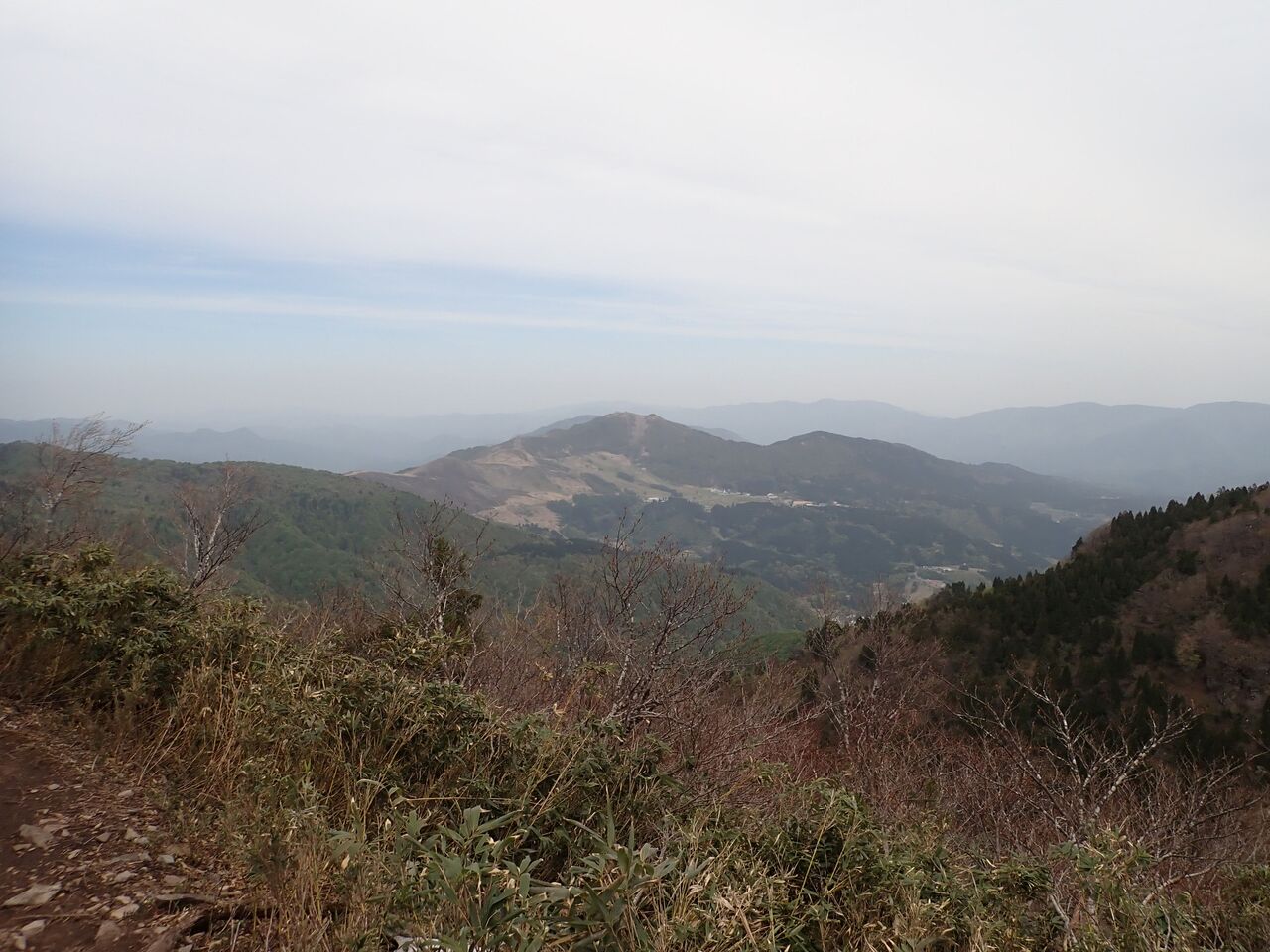稜線から振り返ると鉢伏山と鉢伏高原が良く見える。