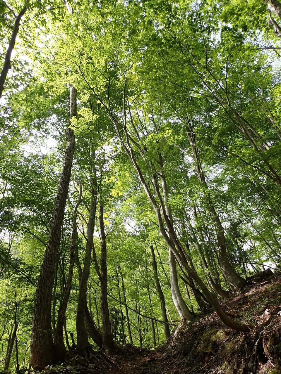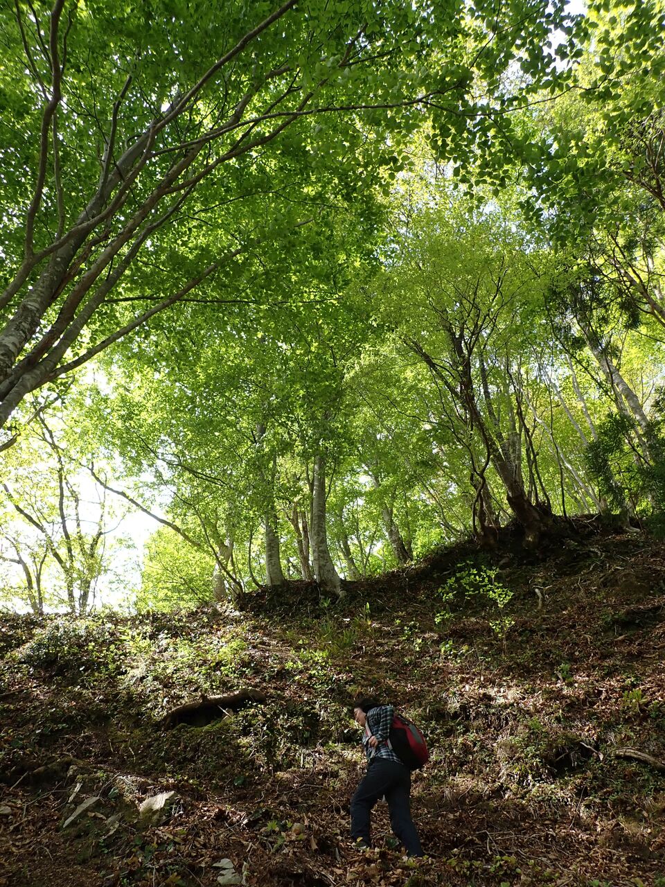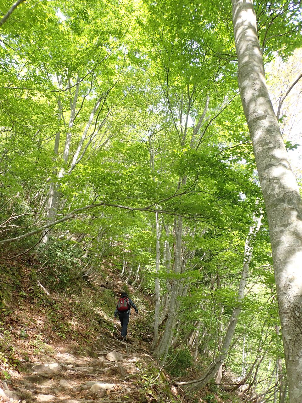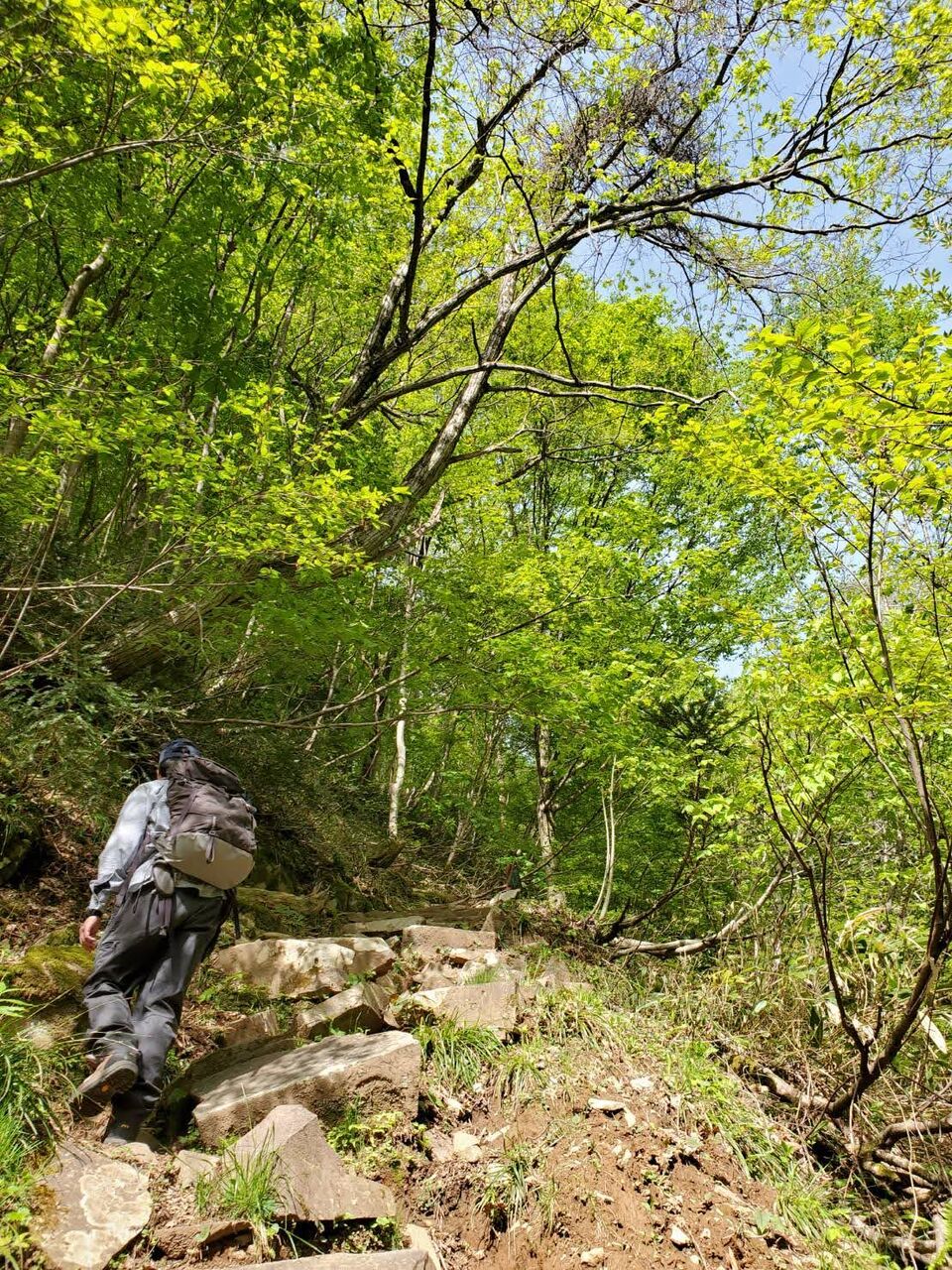 まぶしい新緑の中を登っていく。