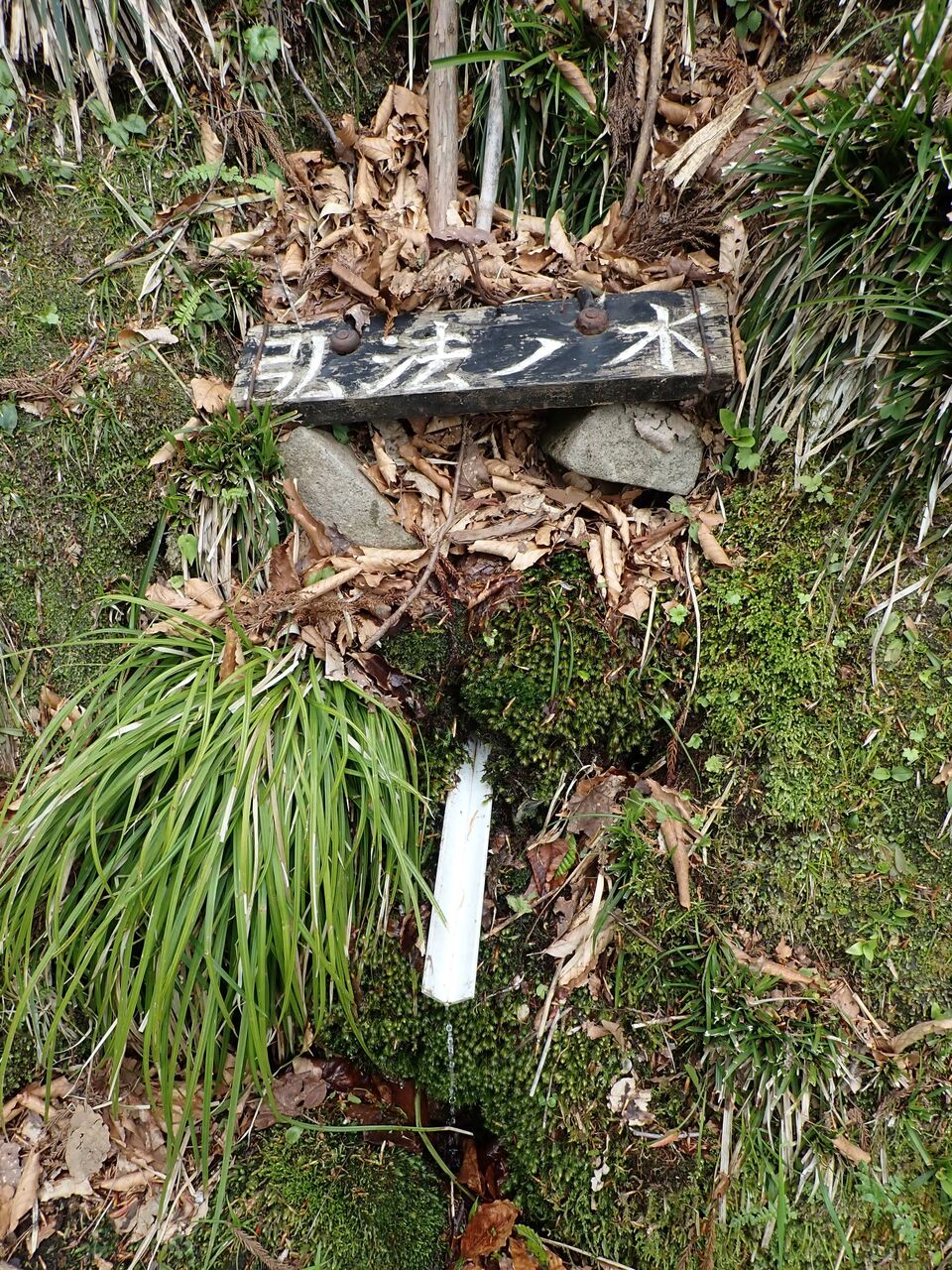 弘法の水という名称の水場。ここはちょろちょろ水量。ここでコップ一杯の水を補給。うまい!
