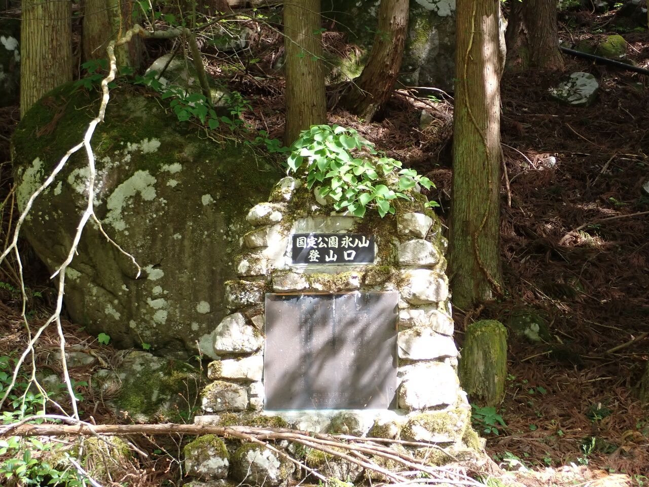 渋滞もなく8時過ぎに目的地の福定親水公園キャンプ場へ。テントは誰も張っていない。駐車場は2/3ほど埋まっていたが、みな登山目的のようだ。東尾根コースに向かう人たちはここからしばらく氷ノ山国際スキー場まで林道歩きだが、私たちはこのキャンプ場の奥から続く氷ノ山越えコースを選択。看板には健脚向きと書いてあるが、こちらのほうが東尾根コースよりも楽だと思う。