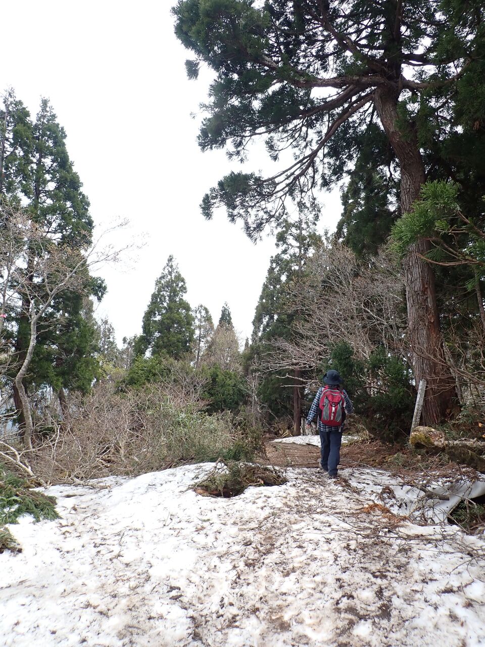 残雪が残る千本杉を通過