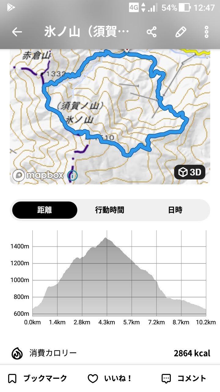 YAMAPで測定した今回の行程。ゆっくり歩いたのでほぼコースタイムどおりかな。