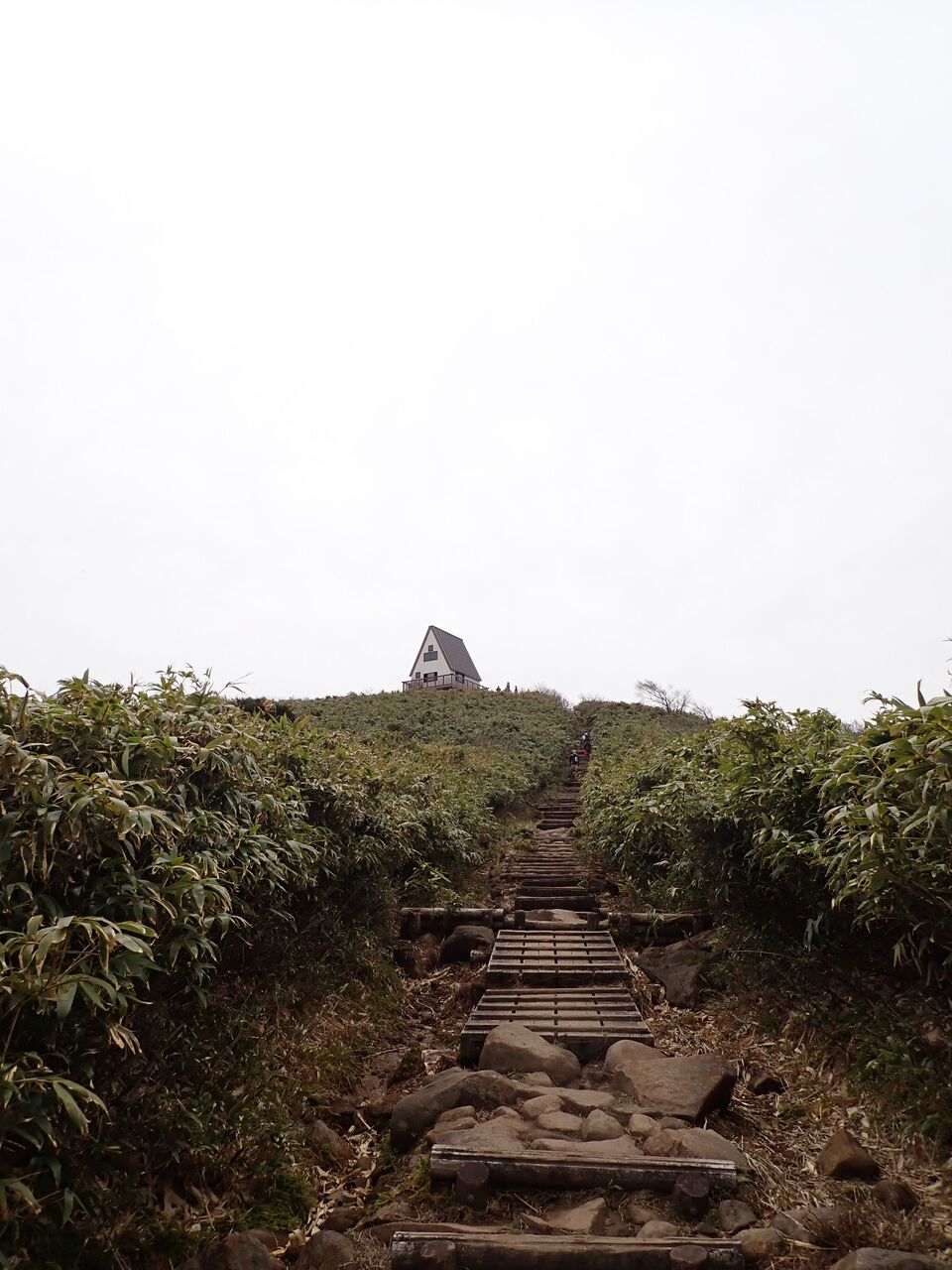 山頂の避難小屋が見えてきた。もうひとふんばり。
