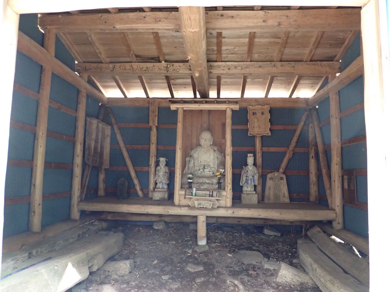 とたんで覆われた小屋だが、中には立派な地蔵さんが鎮座。