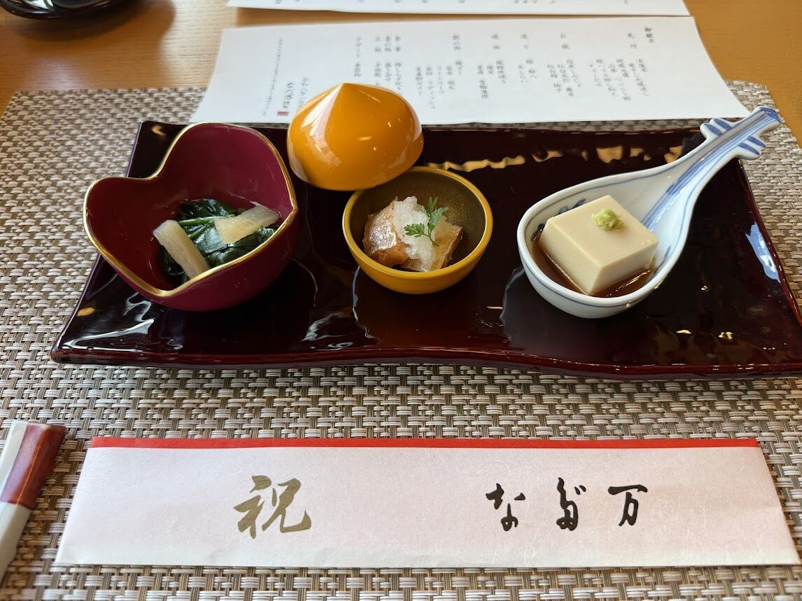四十九日法要前ではあるが、母の記念すべき節目の年の誕生日祝いを日本料理屋で行った。当日は雪予報であったが、快晴。