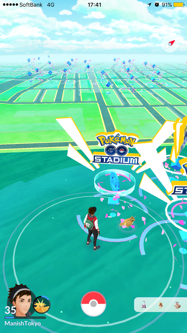 関内駅から歩いているうちにポケストップをなくなっていることに気づいきポケモンも出現しないことはイベント用に調整と気づきました。スタジアムで特設なジムができていて落選の自分がちょっと焦った気分。