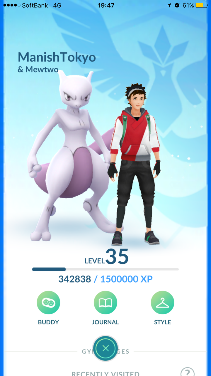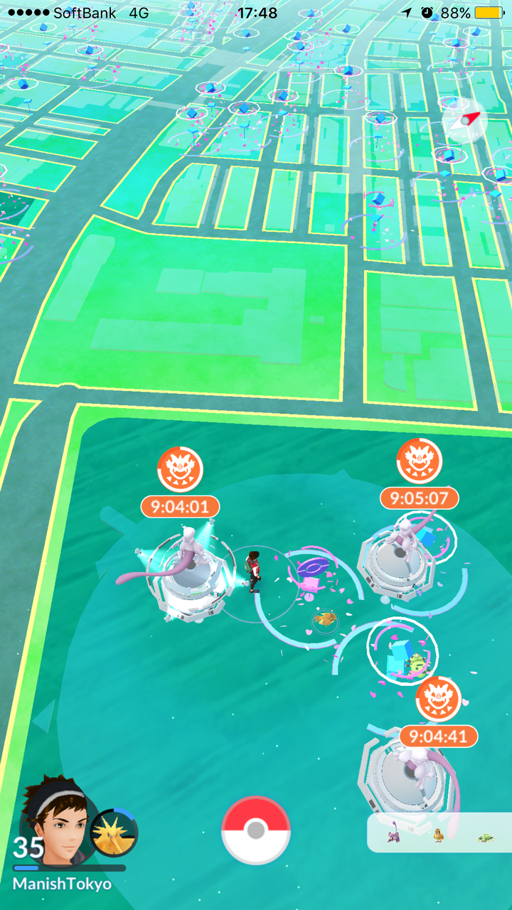 5つ目の方がようやくOKしてくれて一緒にスタジアムに入ることができた。5分待つと以下の通りジムになんとミュウツーが出現!!!