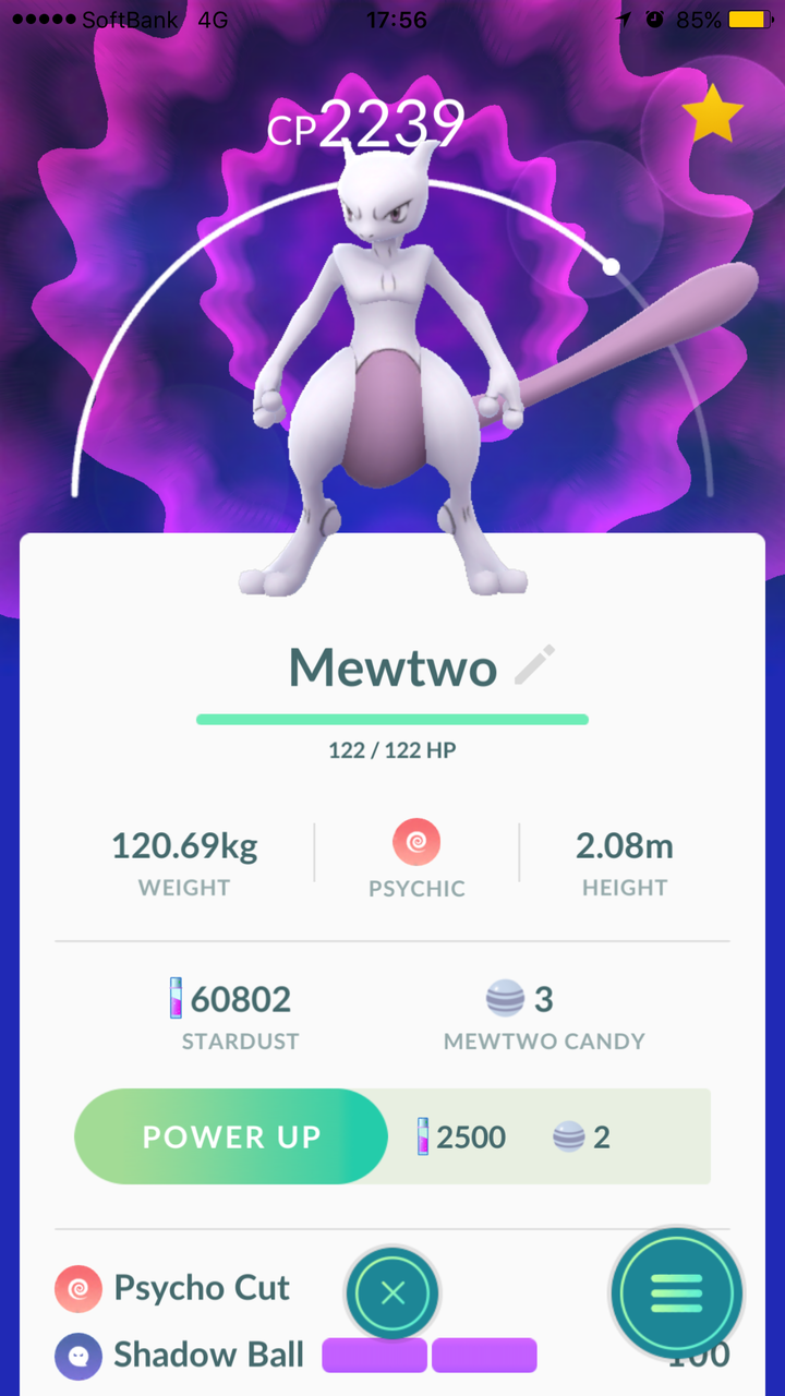 ジムをタッチすると以下の通りCP49430のミュウツーが登場です!最高!!