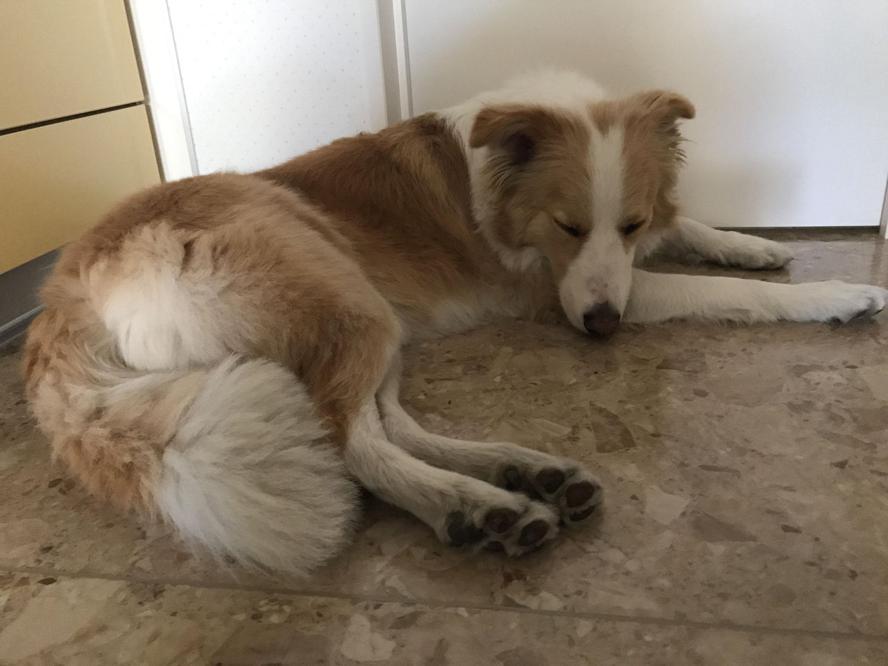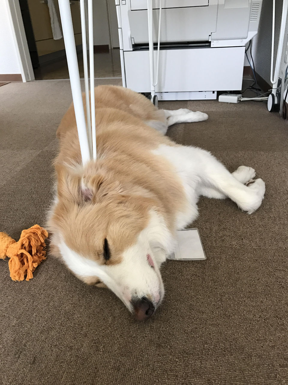 冷たい床で目を閉じています( ˘ω˘)スヤァ