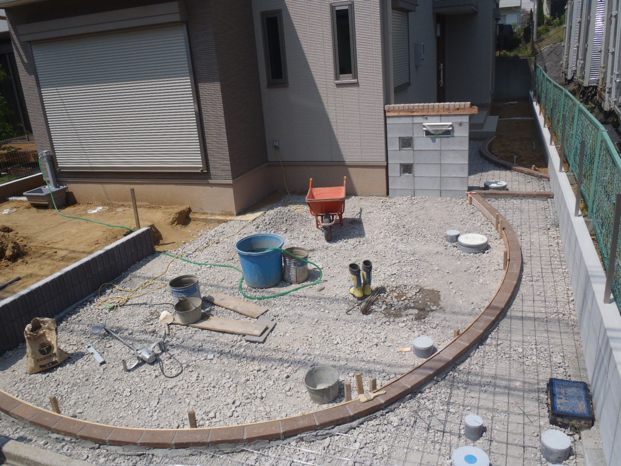 玄関前の曲線を造作中。