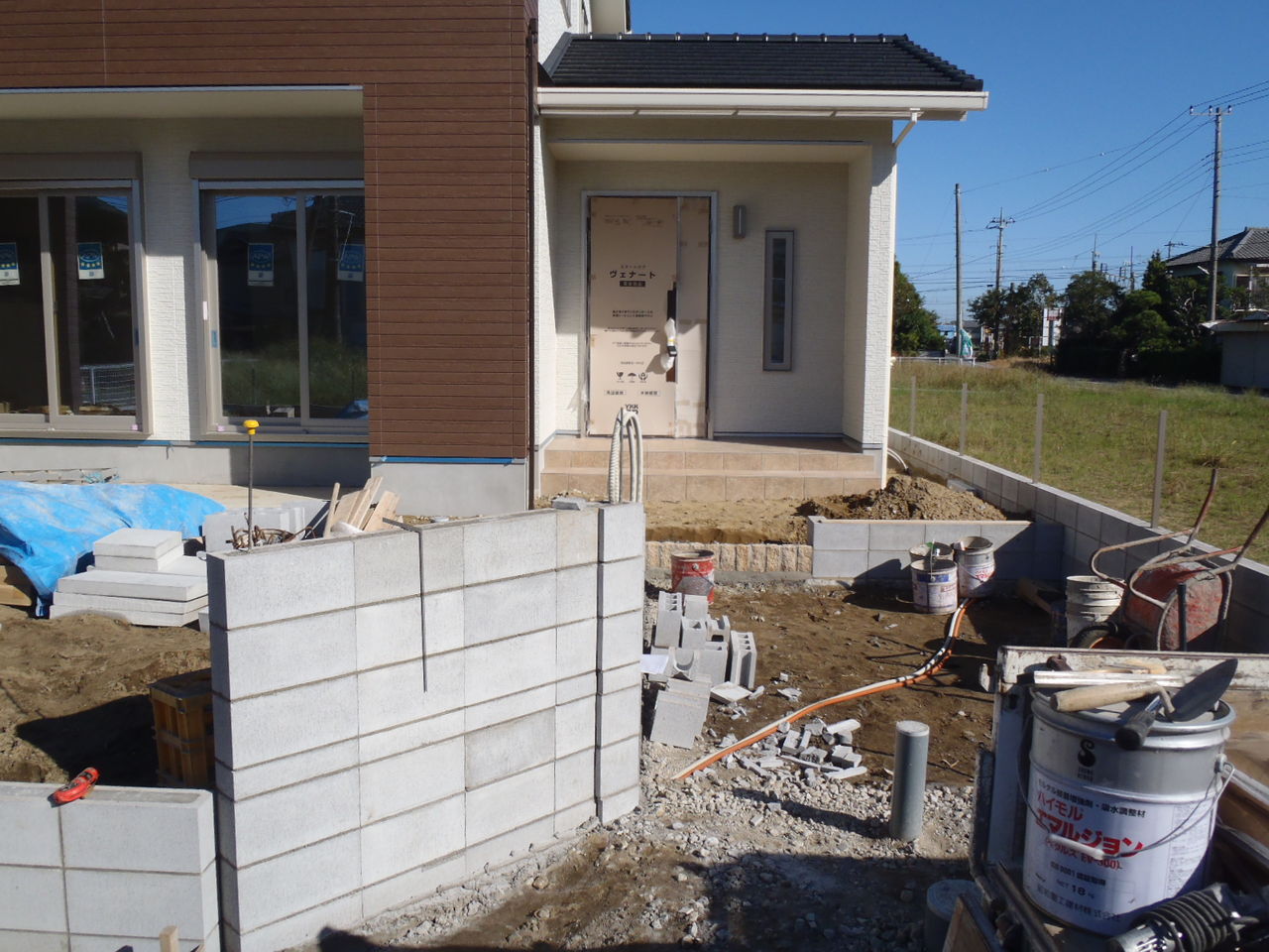 ブロック積み開始です。