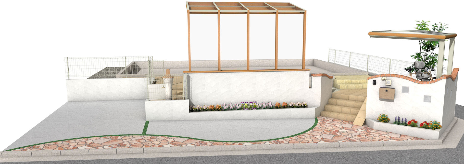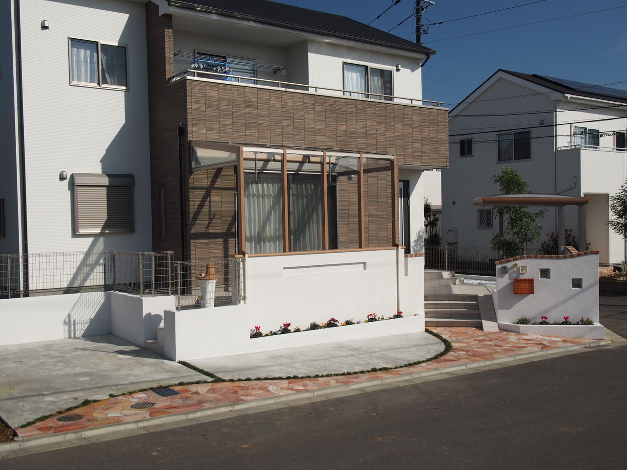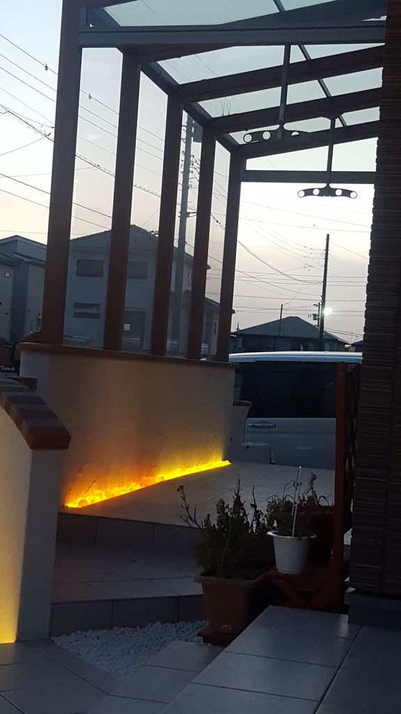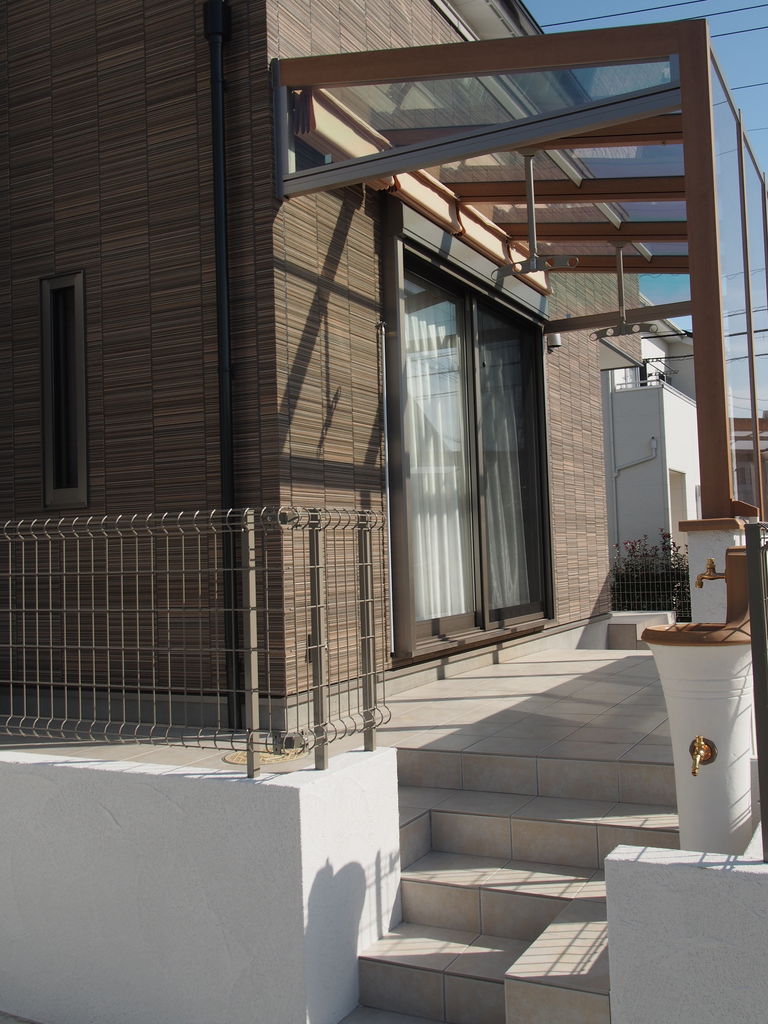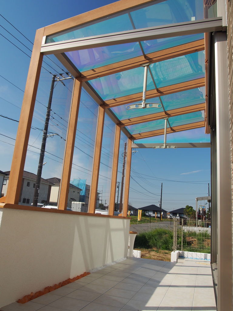 テラス屋根にLIXIL ココマ(サイドスルー)を設置。
