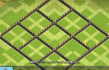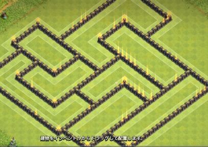 ・BHだけで壁を区切らないこと。4×4の区切りが作れるので、BHを囲いたくはなりますが、それだけ区切っても全く意味がありません。BHを攻撃してる間に、ユニットを殺せるのがベストなので。しかもアチャコで壊せてしまいますし。
